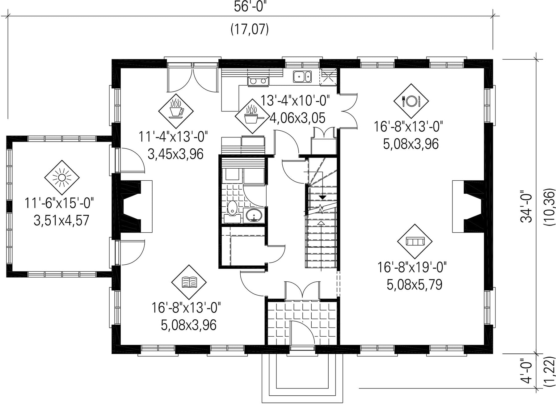 | Front | 56 ft | Total living surface | 2976 ft² |