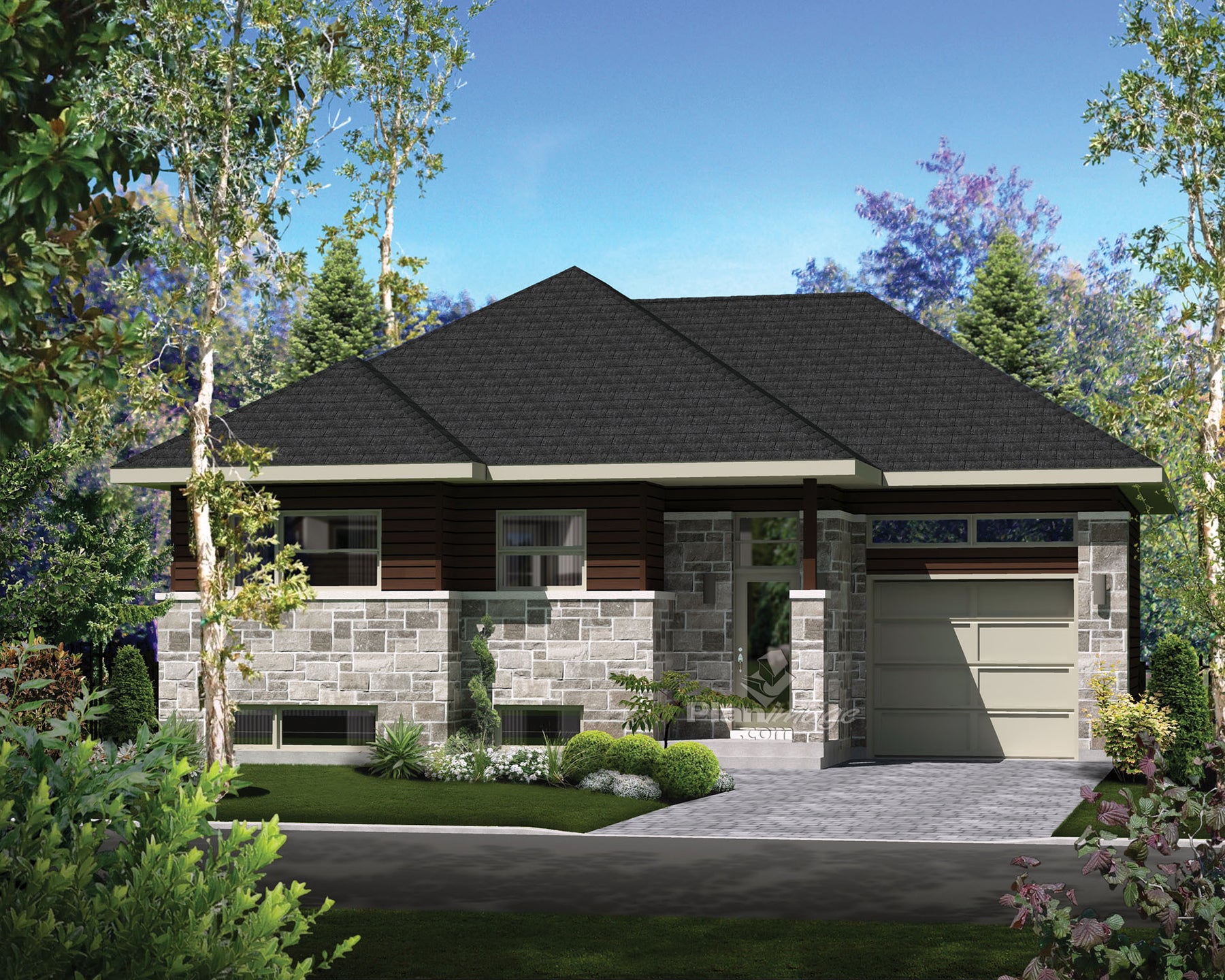 This lovely contemporary bungalow is 40 feet 10 inches wide by 36 feet deep and provides 953 square feet of living space, in addition to a 313 square foot one-car garage with direct access to the backyard.