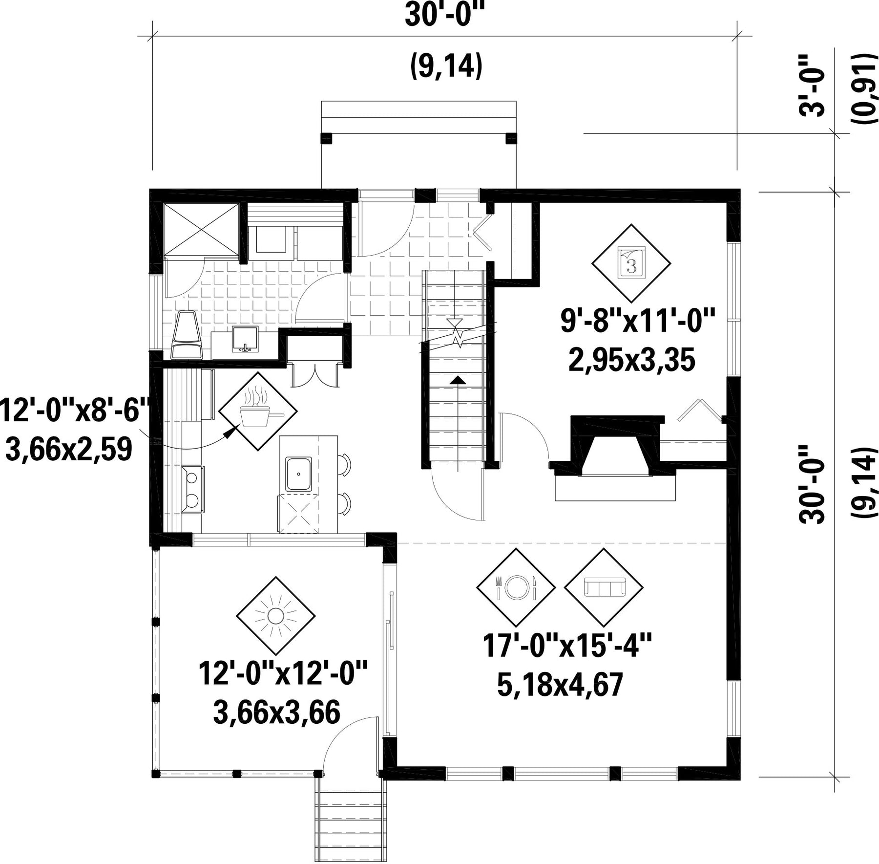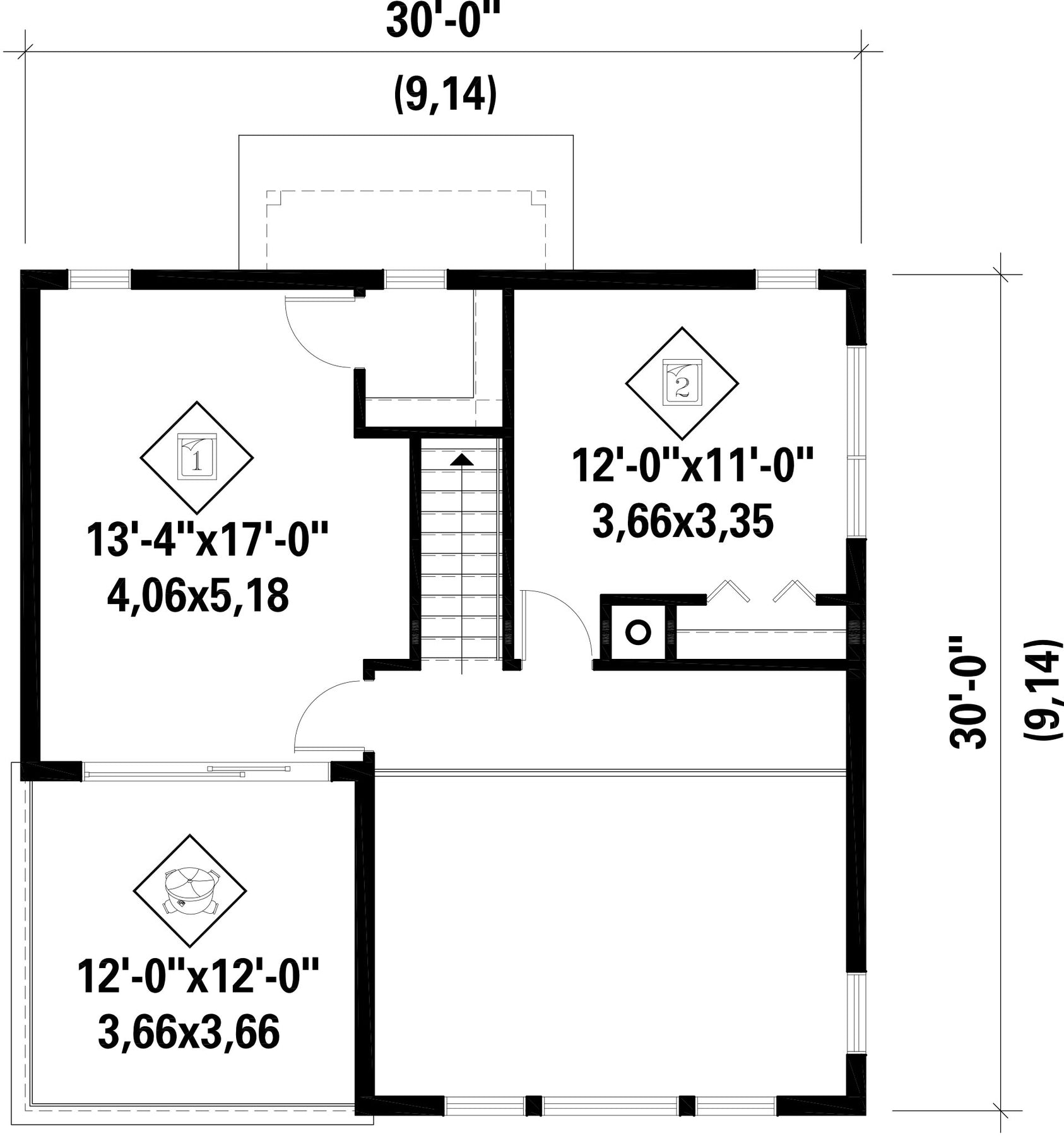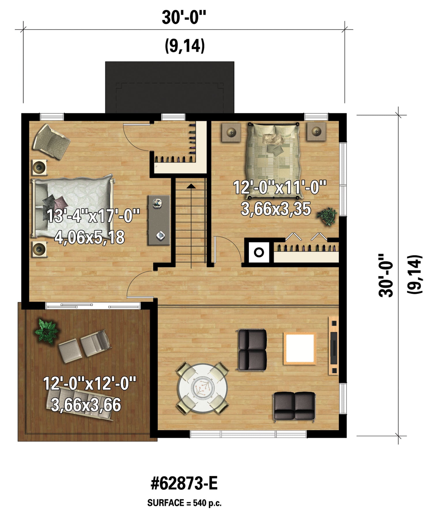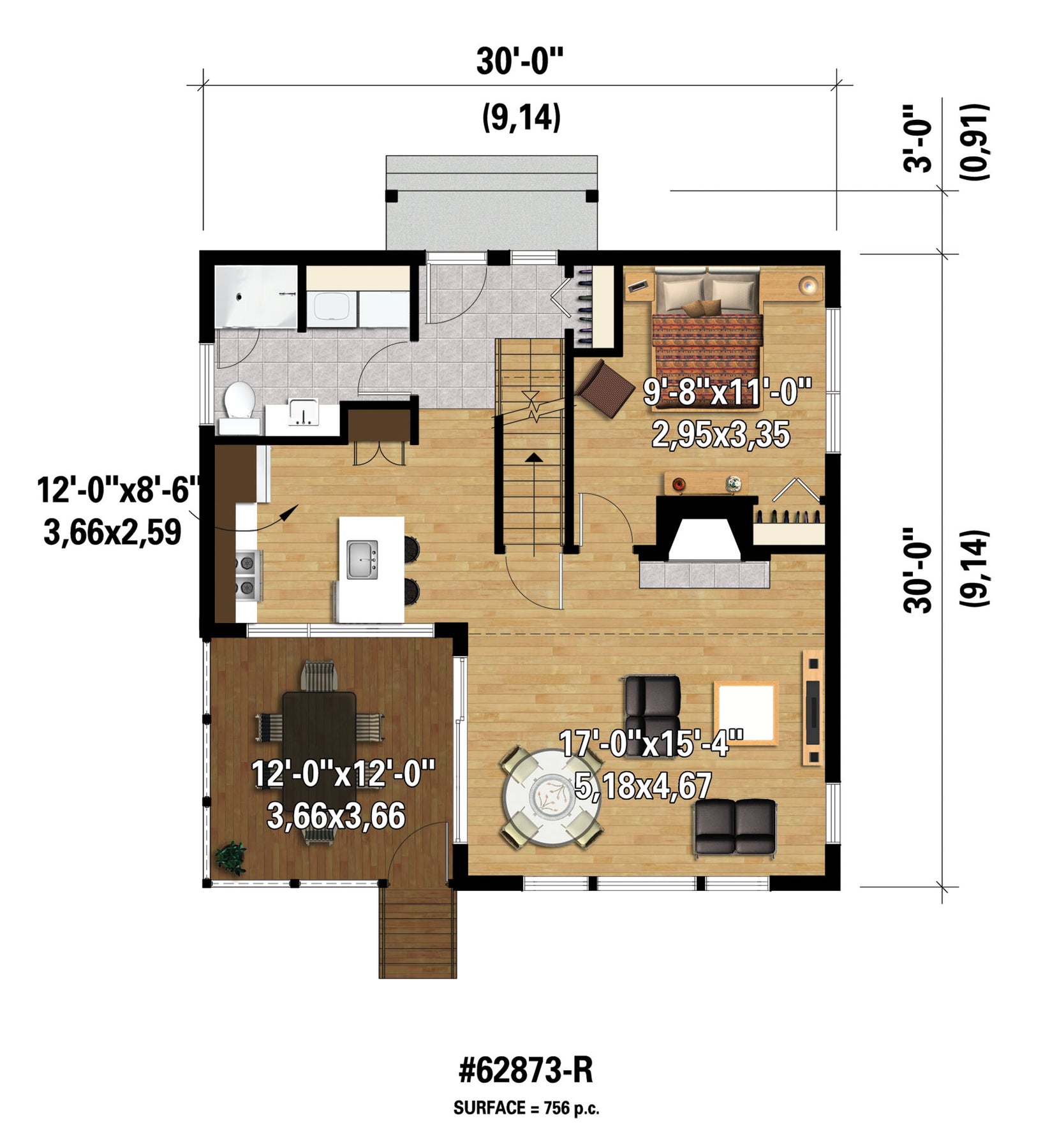 | Front | 30 ft | Total living surface | 1296 ft² |
