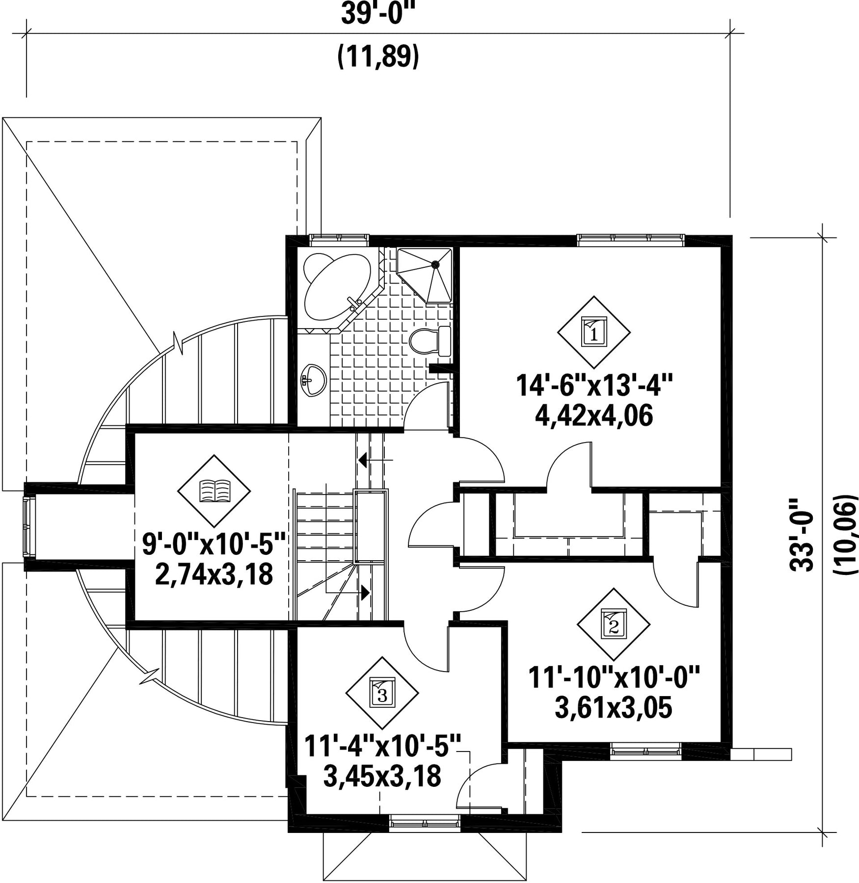 This elegant two-storey brick house is 39 feet wide by 38 feet 4 inches deep, has a 336 square foot one-car garage, and provides 1,865 square feet of living space.
