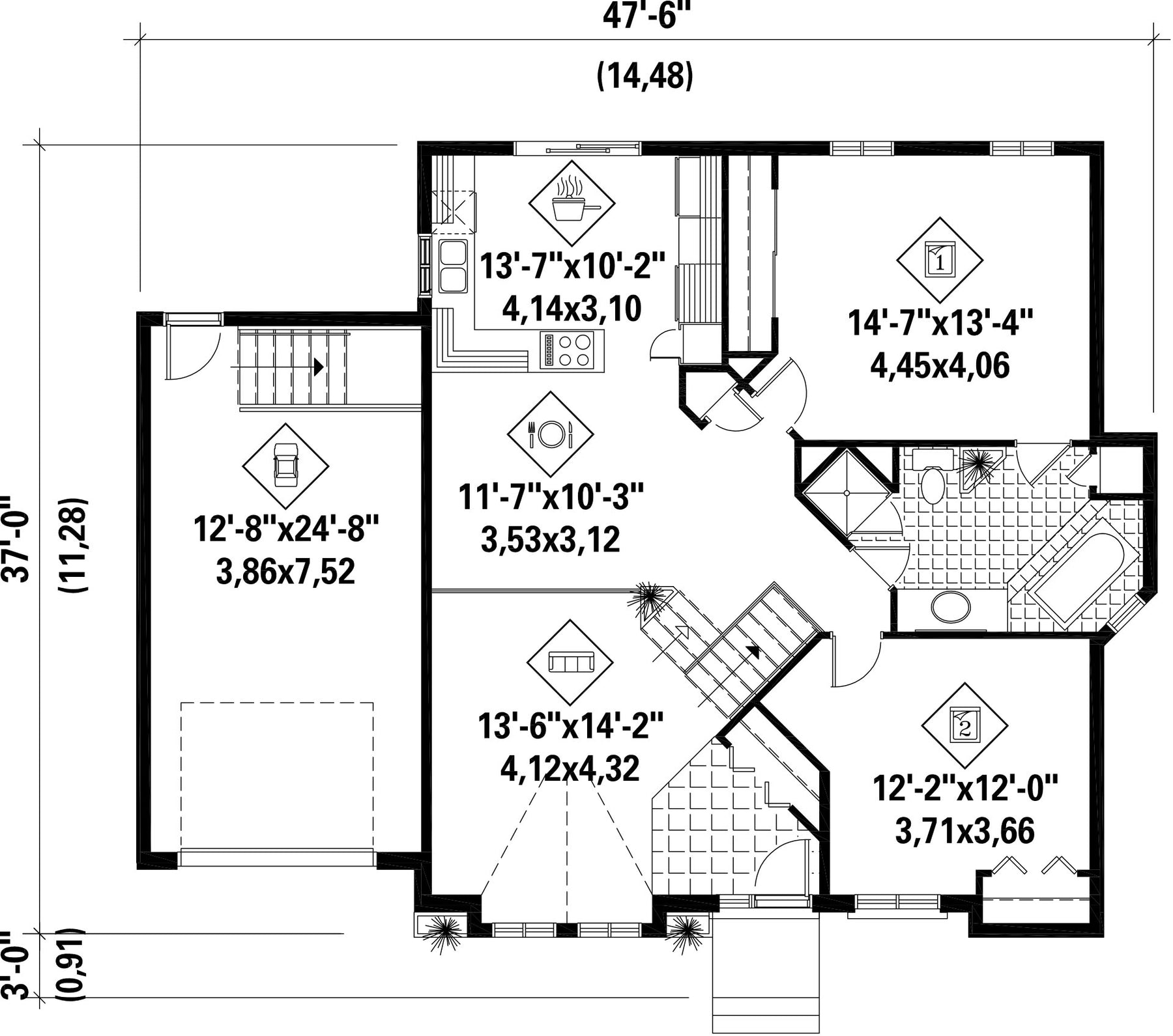 | Front | 47 ft 6 in | Total living surface | 1183 ft² |