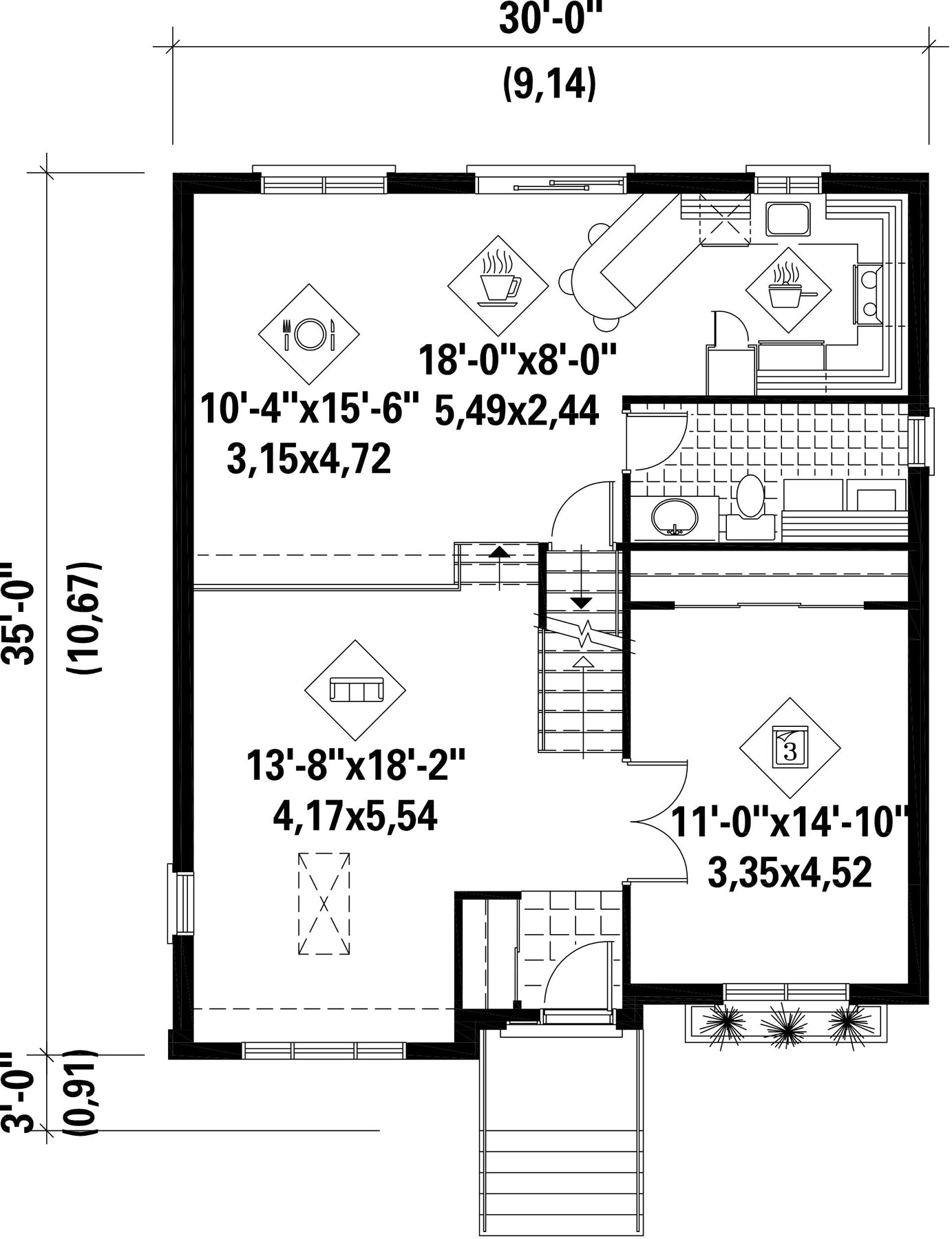 | Front | 30 ft | Total living surface | 1471 ft² |
