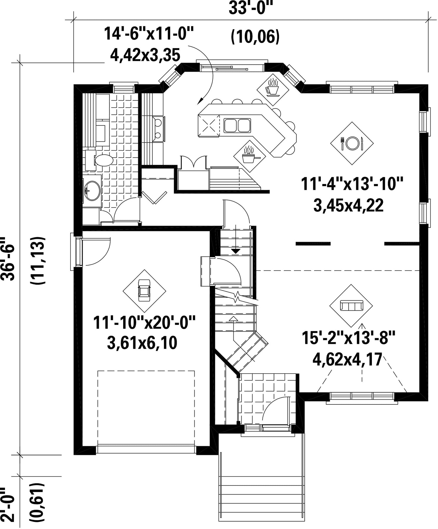| Front | 33 ft | Total living surface | 1511 ft² |