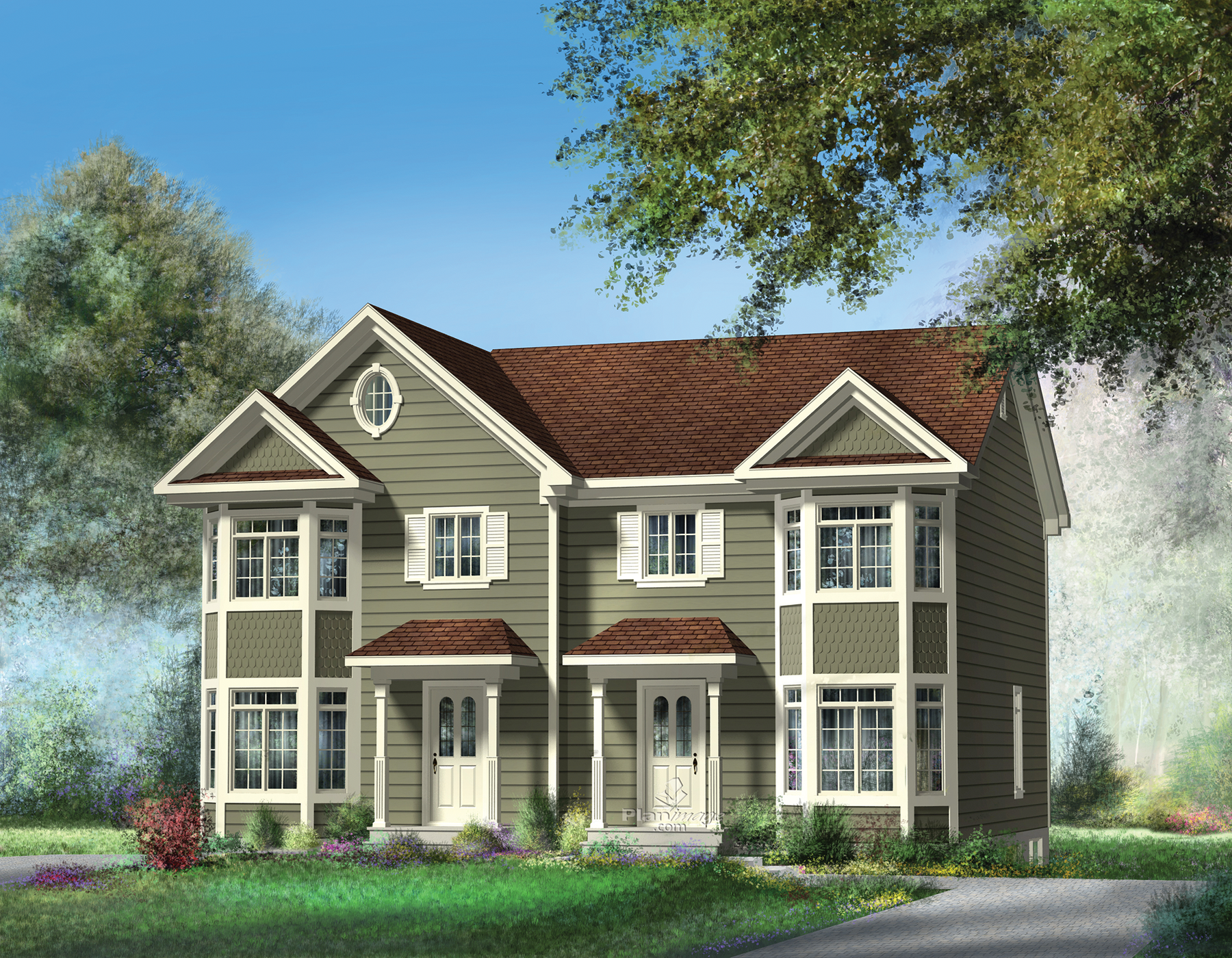 These semi-detached two-storey houses will get noticed with their bow windows, decorative shutters and moldings, and their front porch. They each provide 1,228 square feet of total living space. The surface area is identical in both units, that is 614 square feet for the ground floor and 614 square feet for the upper floor.