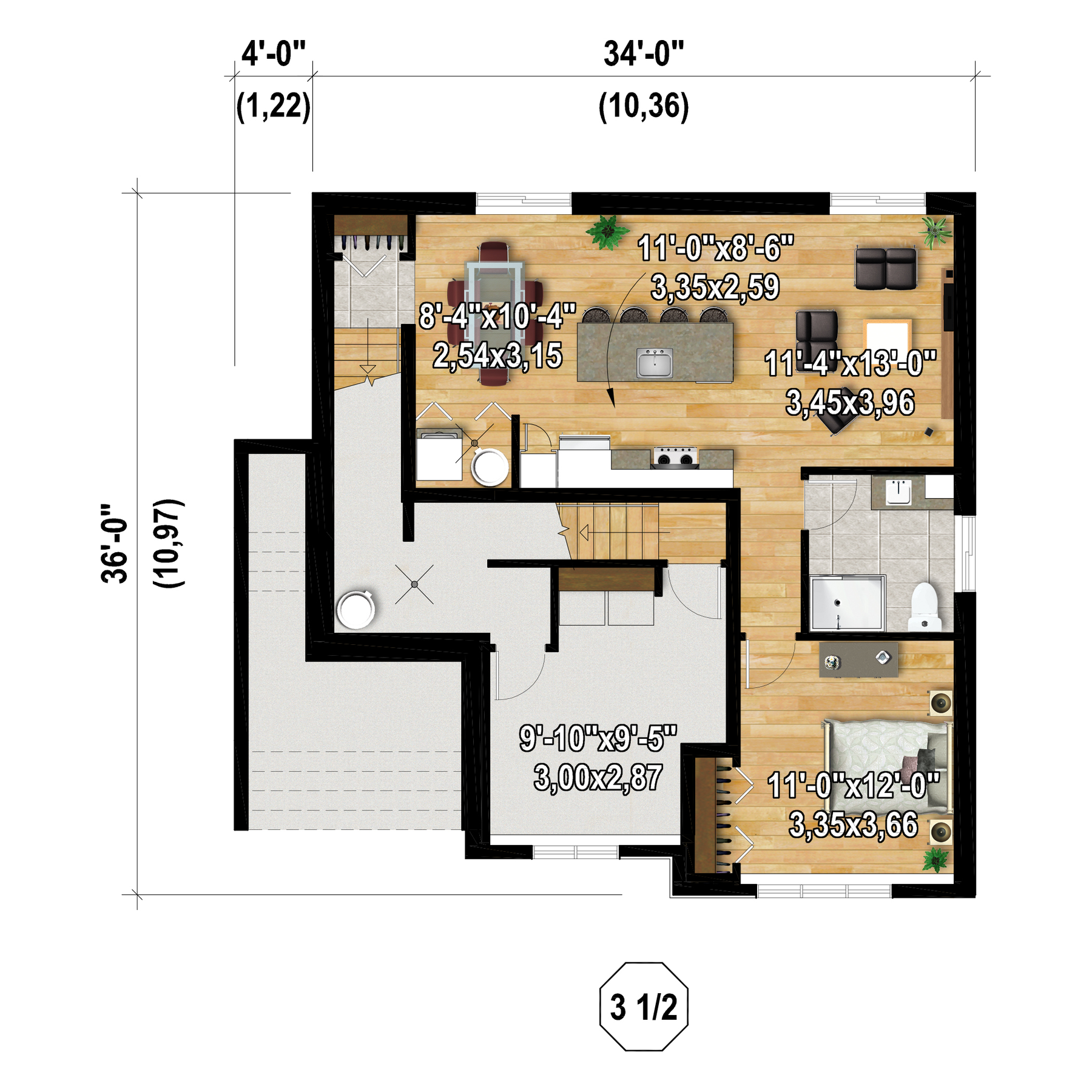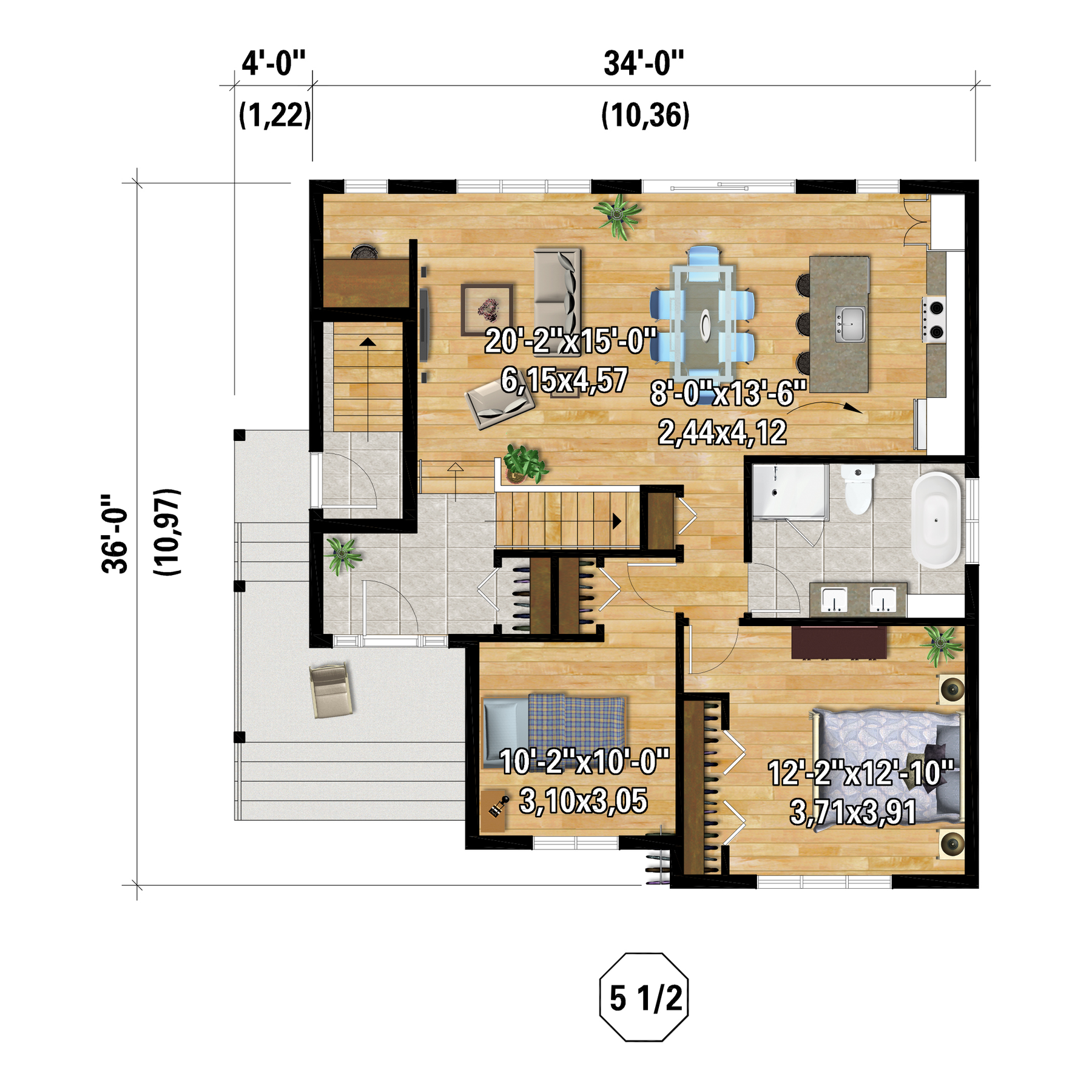 | Front | 34 ft | Total living surface | 2208 ft² |