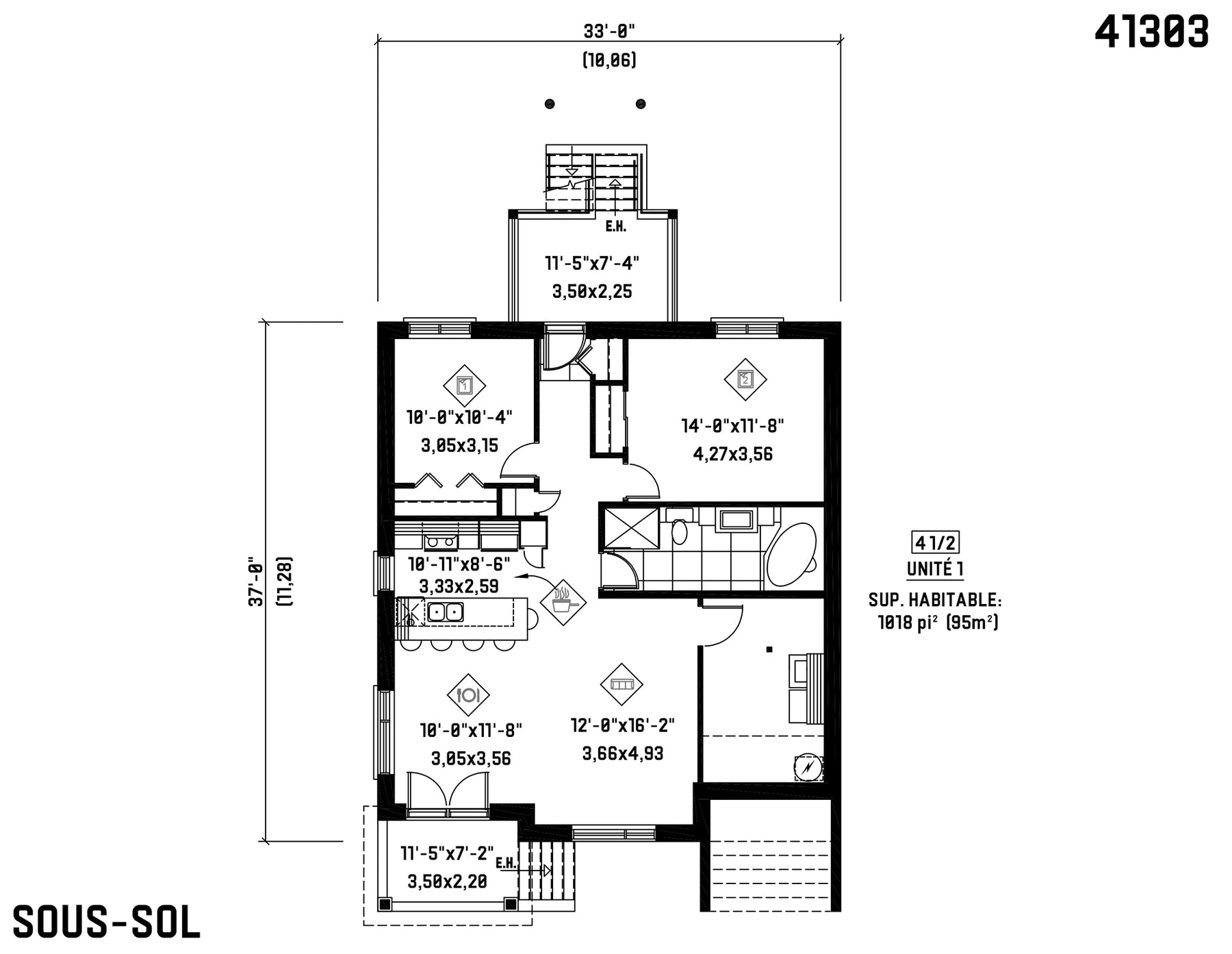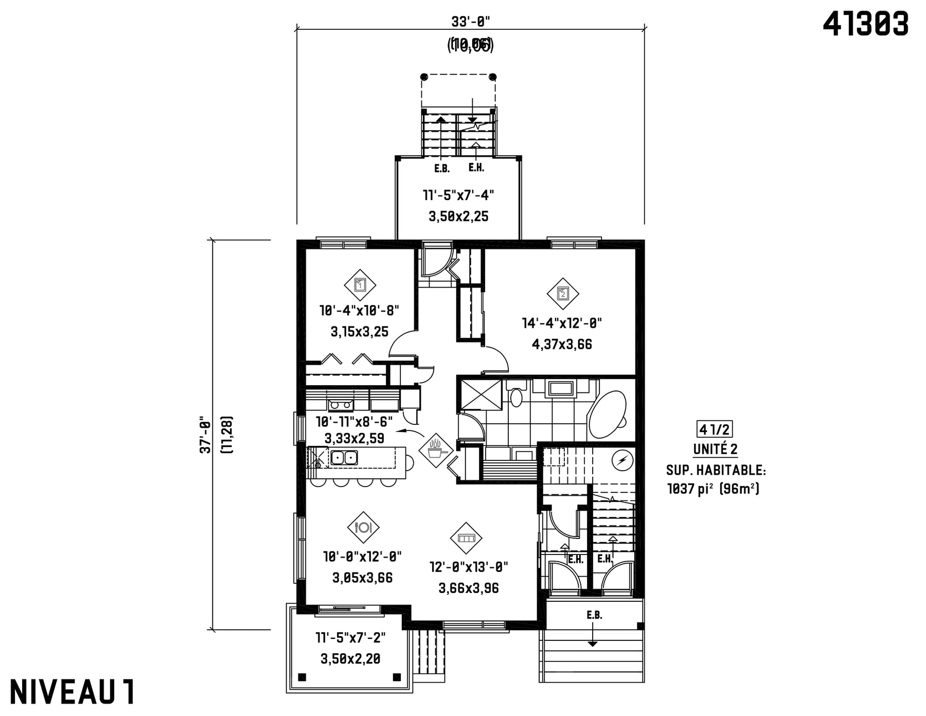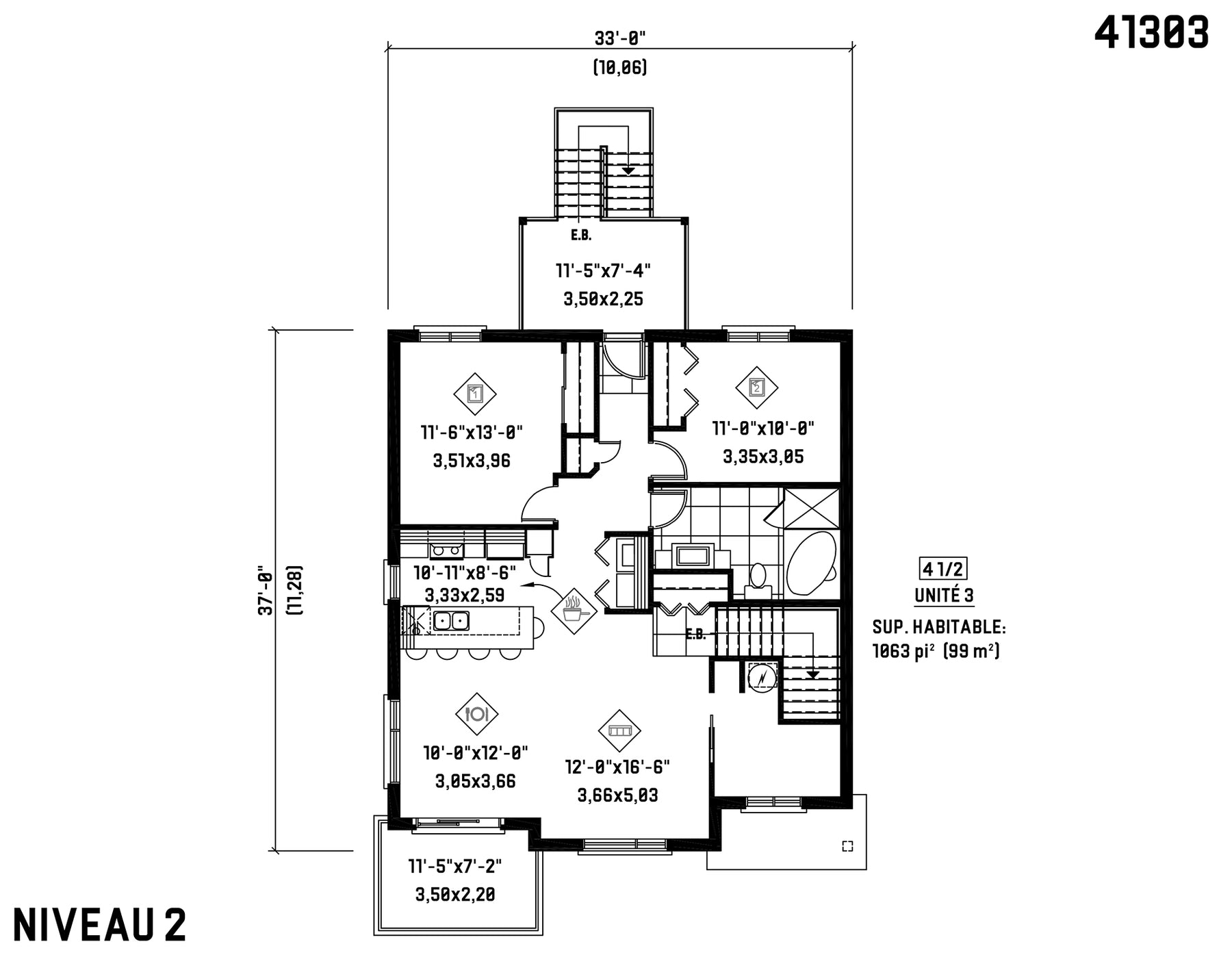 | Front | 33 ft | Total living surface | 3534 ft² |
