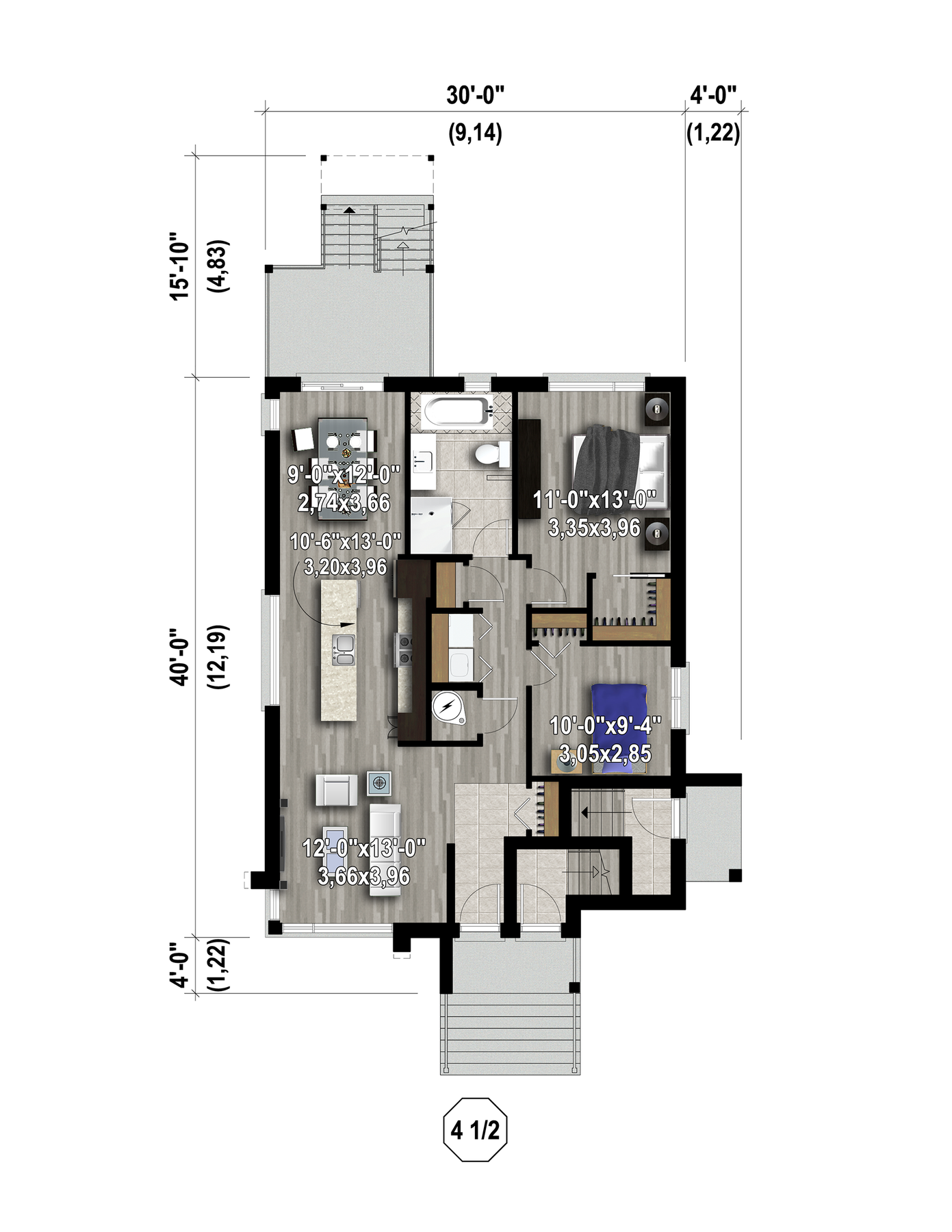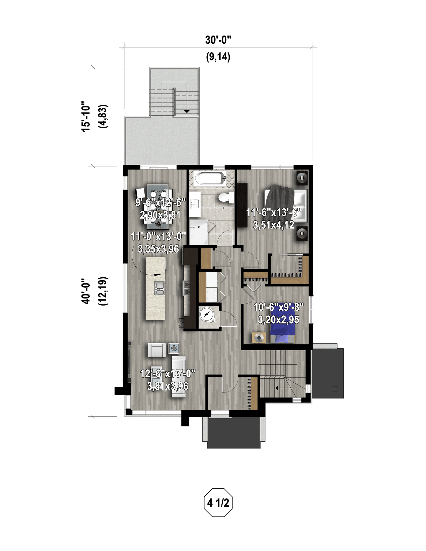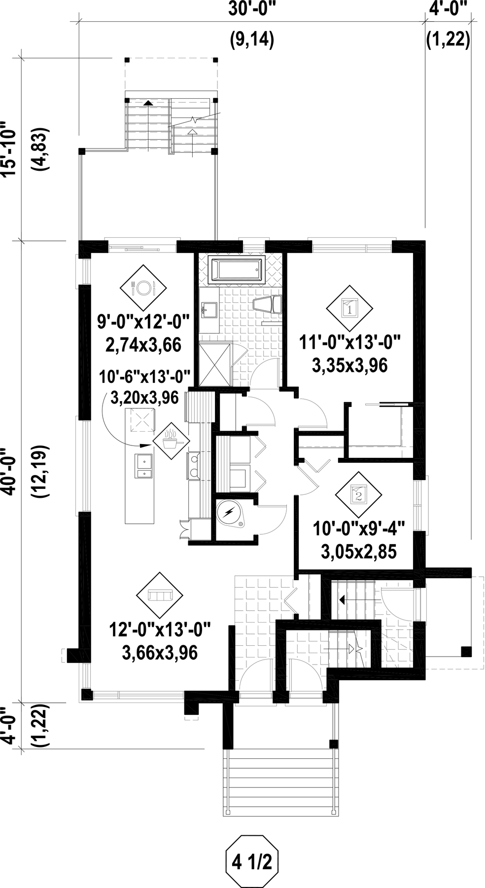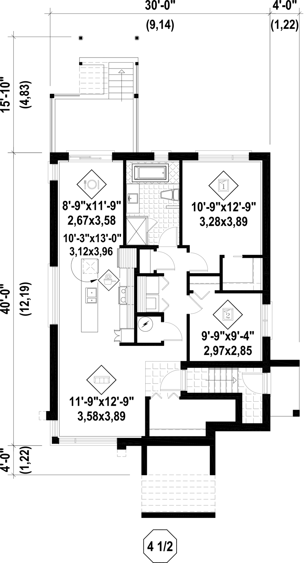 | Front | 30 ft | Total living surface | 3555 ft² |