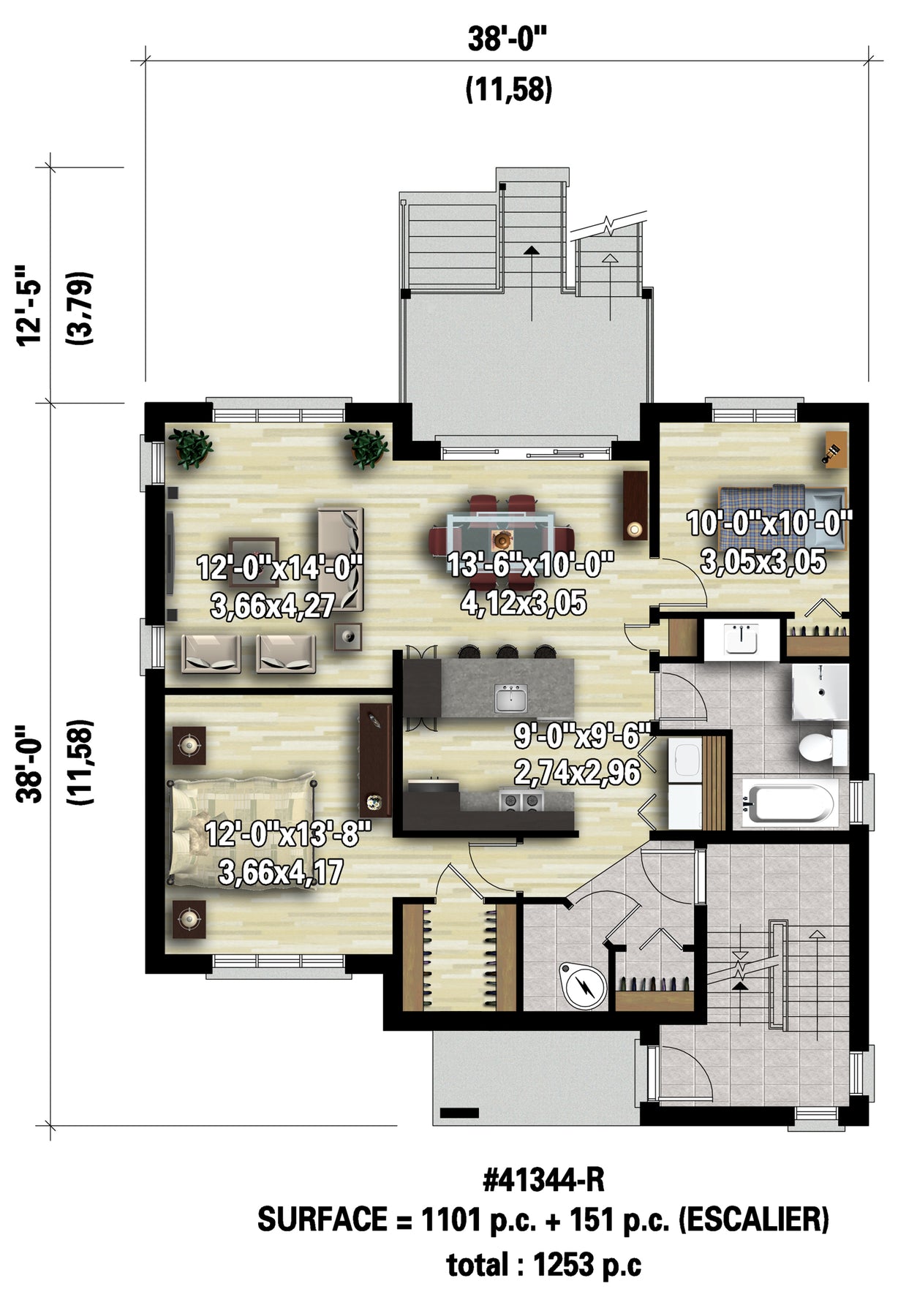 Front 38 ft Total living surface 3720 ft²