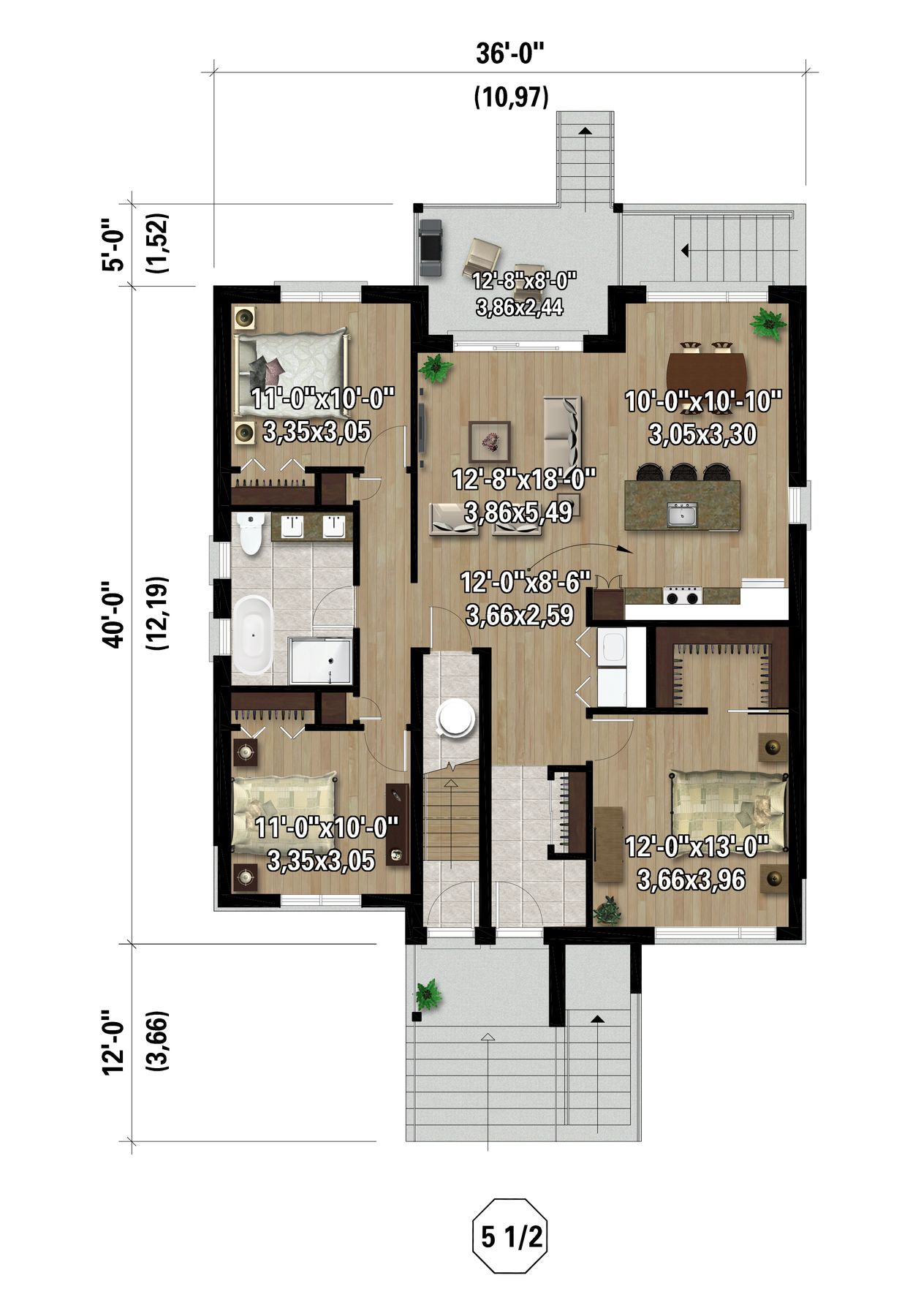 | Front | 36 ft | Total living surface | 4152 ft² |
