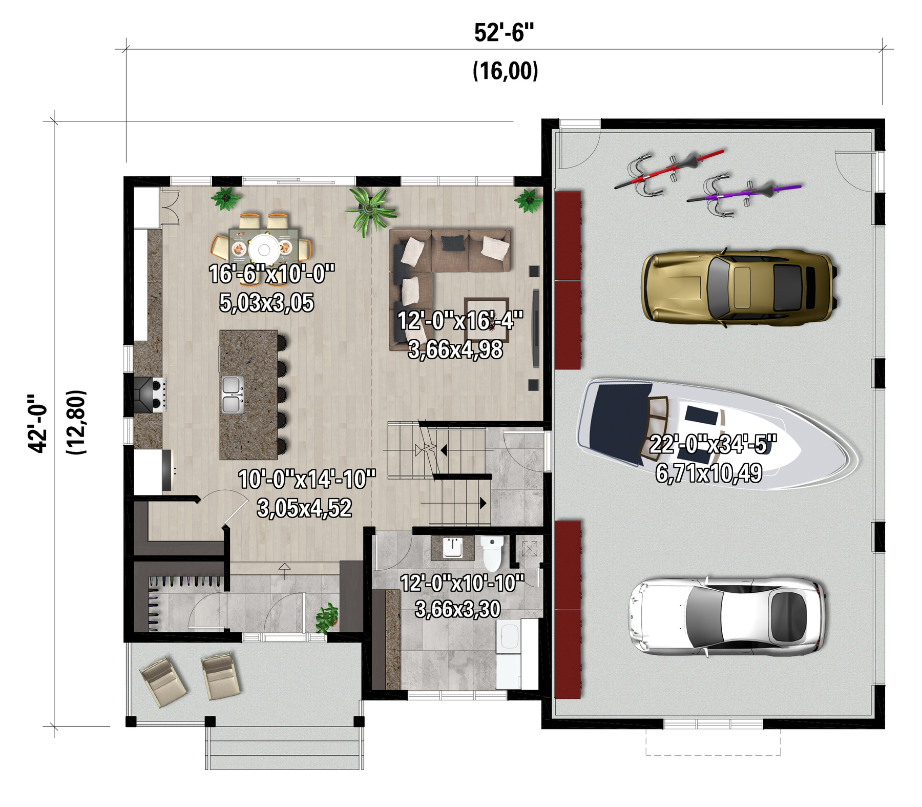 | Front | 52 ft 6 in | Total living surface | 2045 ft² |