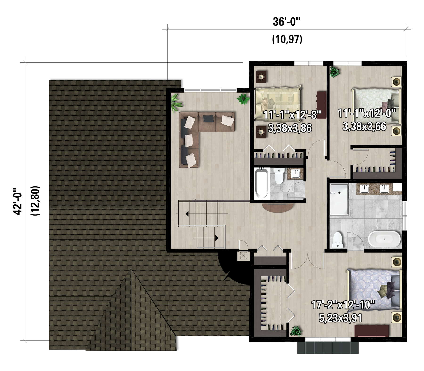 | Second floor wall | 8 ft | Front/back roof slope | 8/12 |