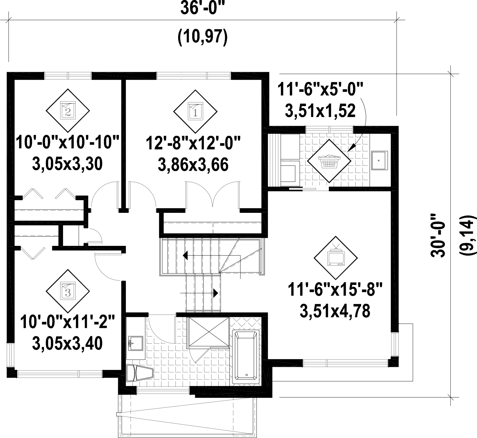 | Front | 36 ft | Total living surface | 1662 ft² |