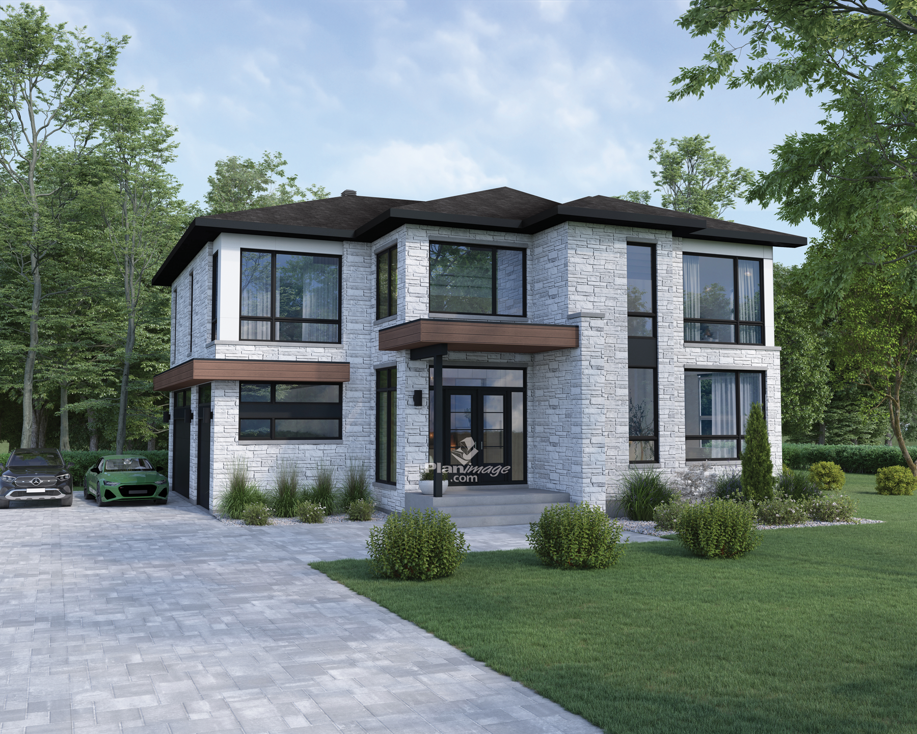 With a livable surface area of 3,316 sq. ft., this prestigious two-storey house of 48 sq. ft. by 48 sq. ft. distinguishes itself with its elegant look and its stone cladding. It also has a three car garage with a livable surface area of 697 sq. ft.