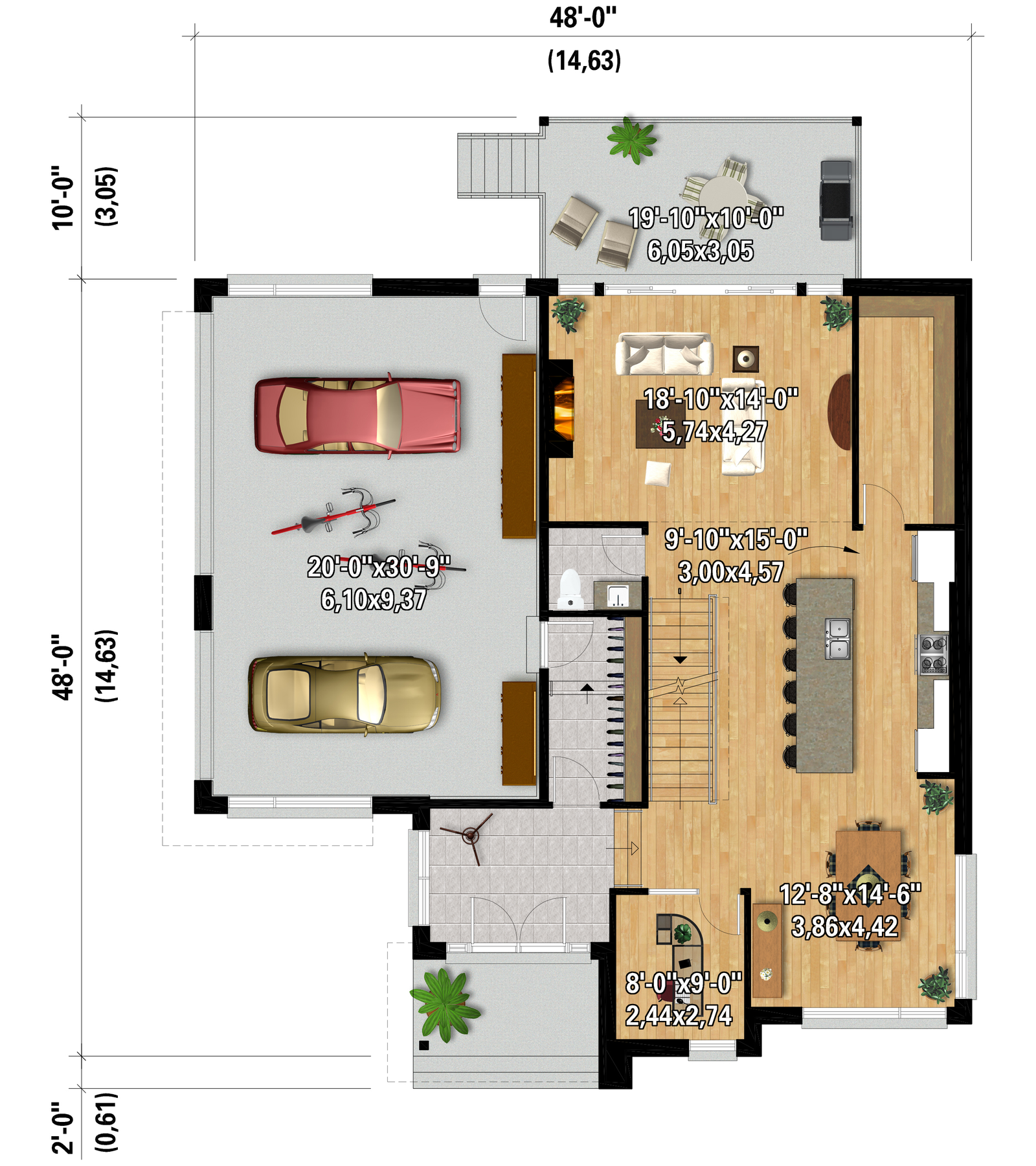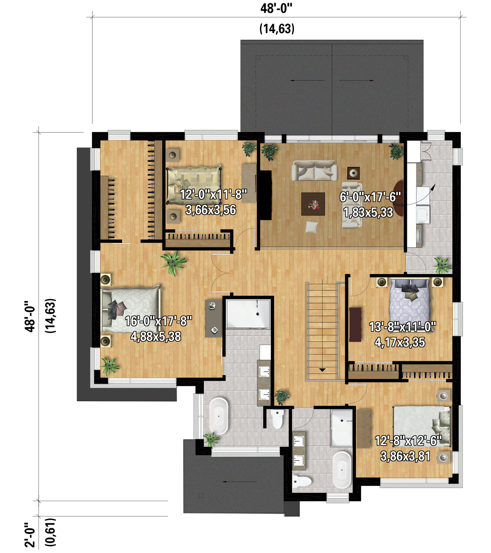 | Front | 48 ft | Total living surface | 3316 ft² |