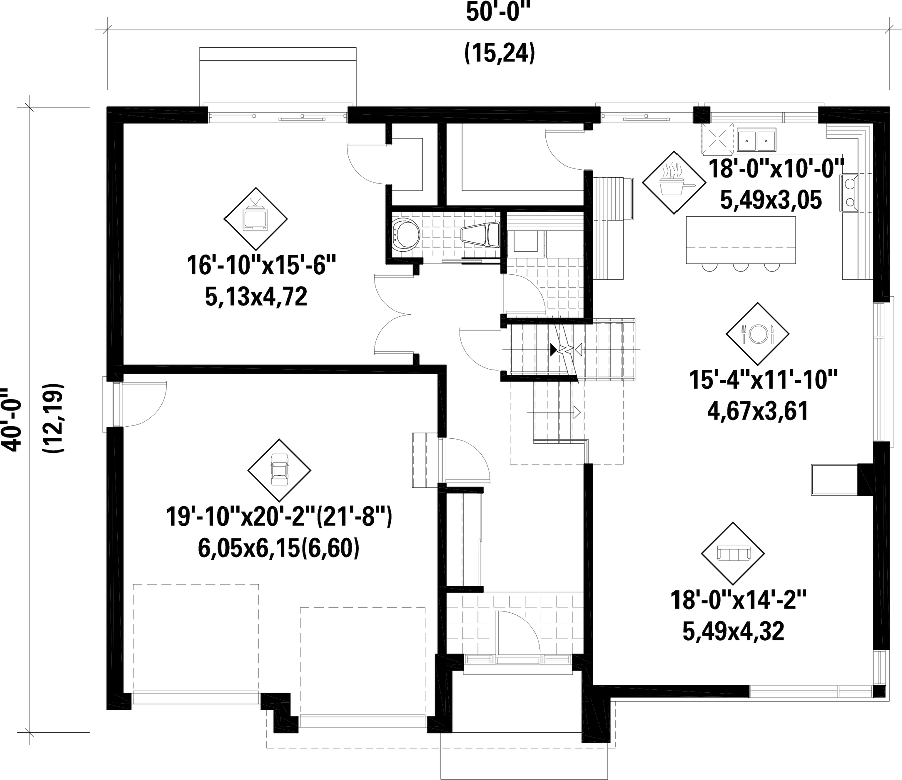 | Front | 50 ft | Total living surface | 2622 ft² |