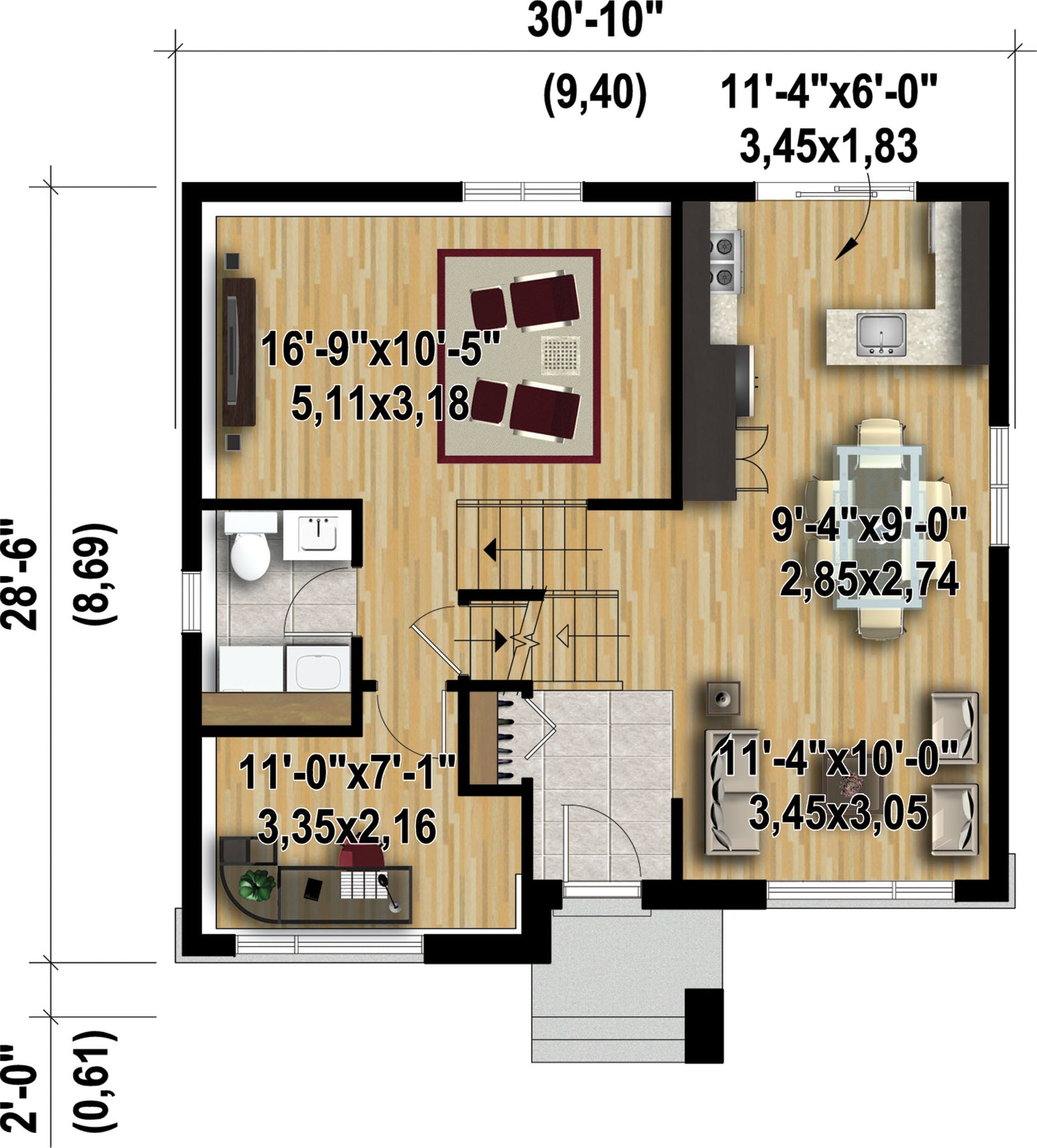 | Front | 30 ft 10 in |