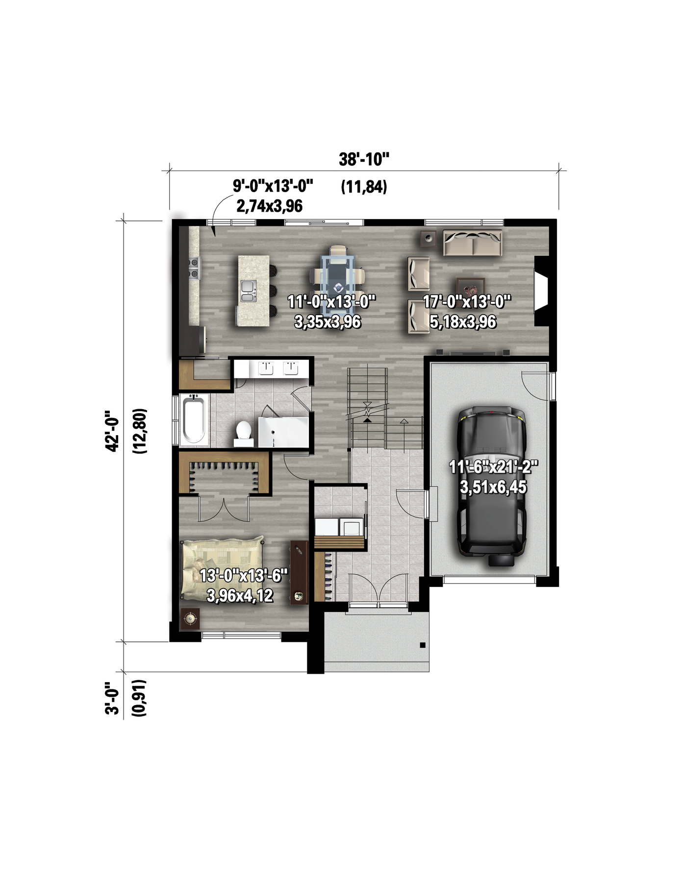 Front 38 ft 10 in Total living surface 1808 ft²
