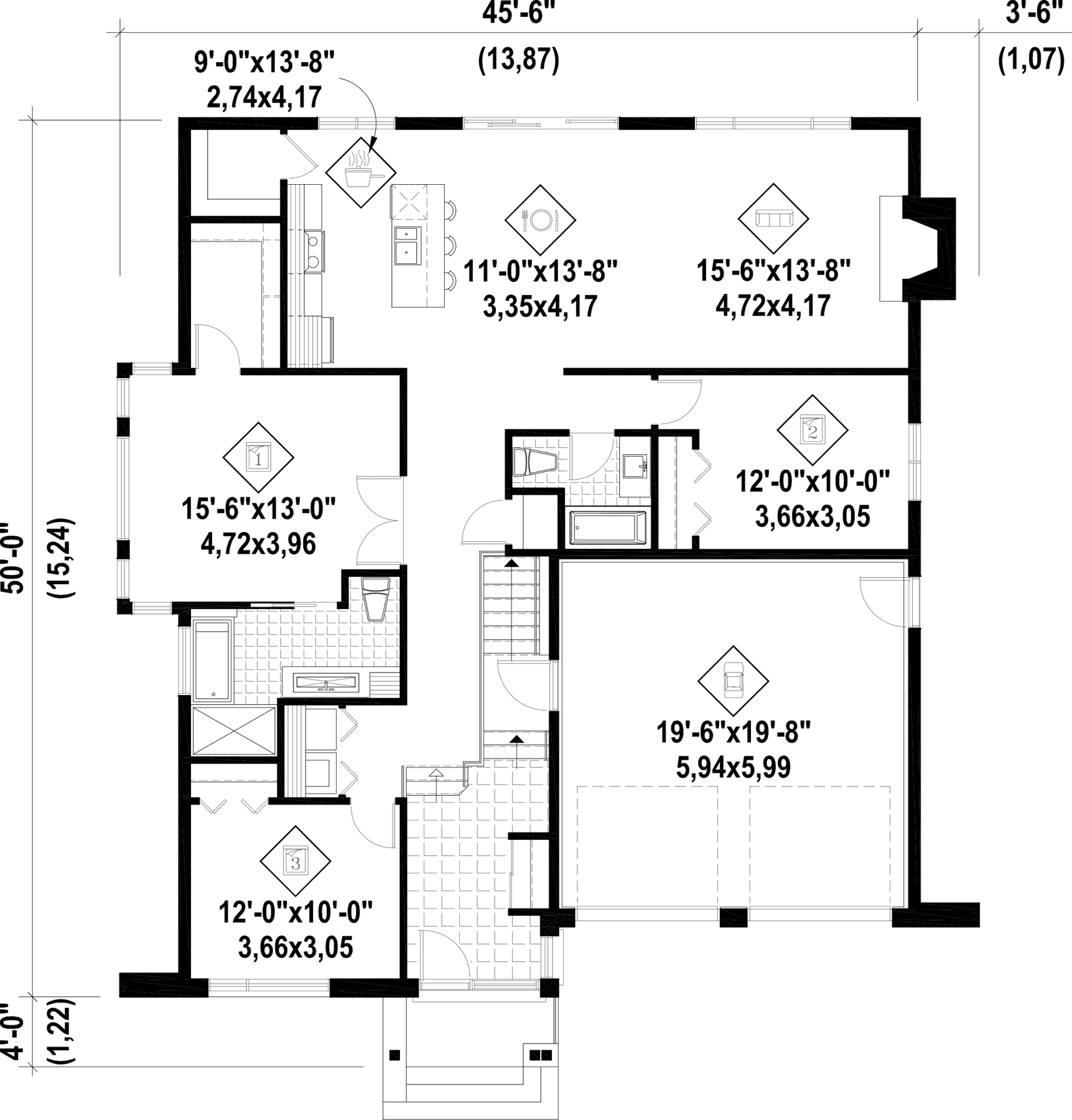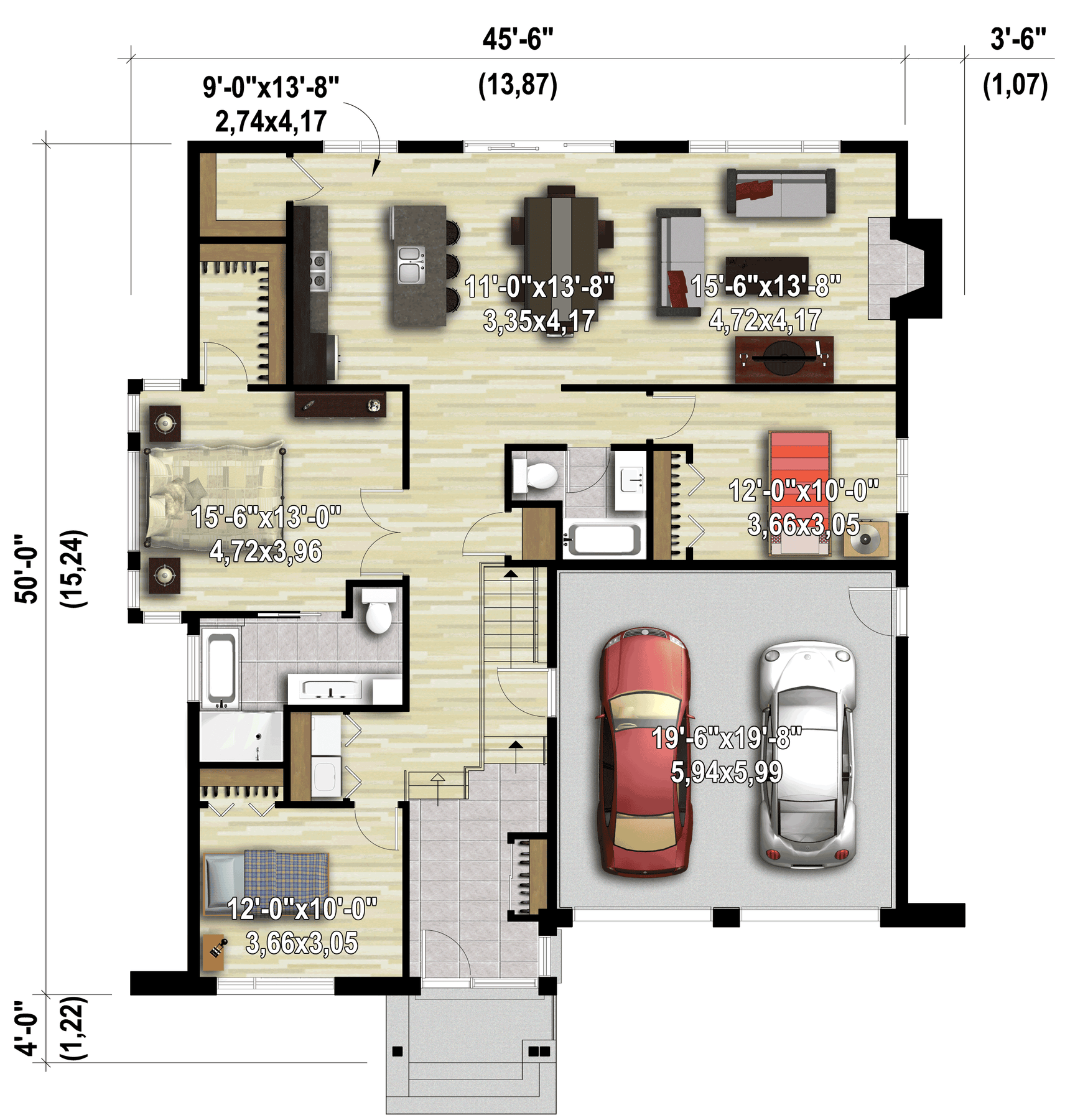 This beautiful urban bungalow is 45 feet 6 inches wide by 50 feet deep and provides 1,637 square feet of living space in addition to a 431 square-foot two-car garage.