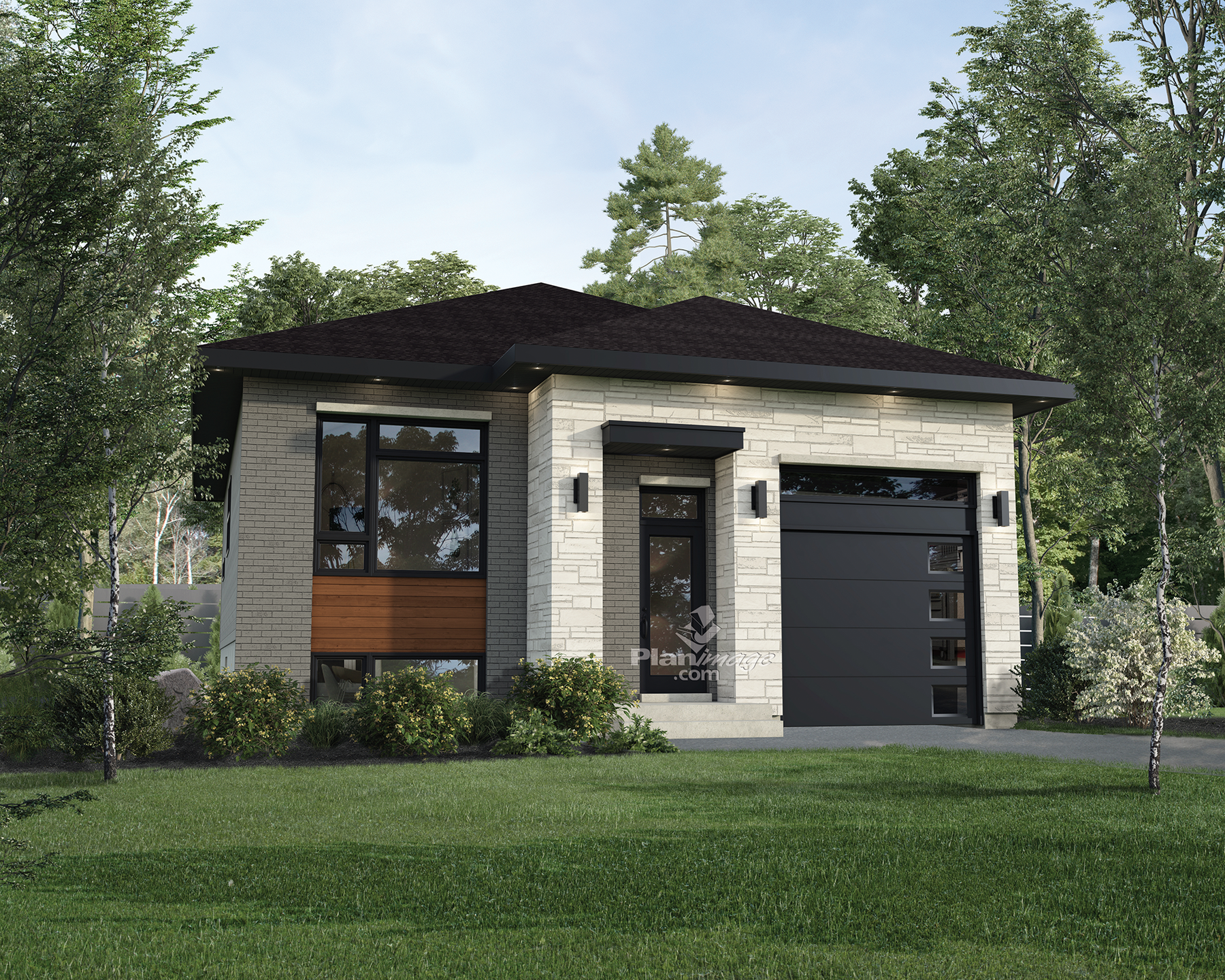 This single-storey, urban-style house has a lowered vestibule. This warm and welcoming home is 32 feet wide by 44 feet deep and has a living area of 1,089 square feet plus a single garage.