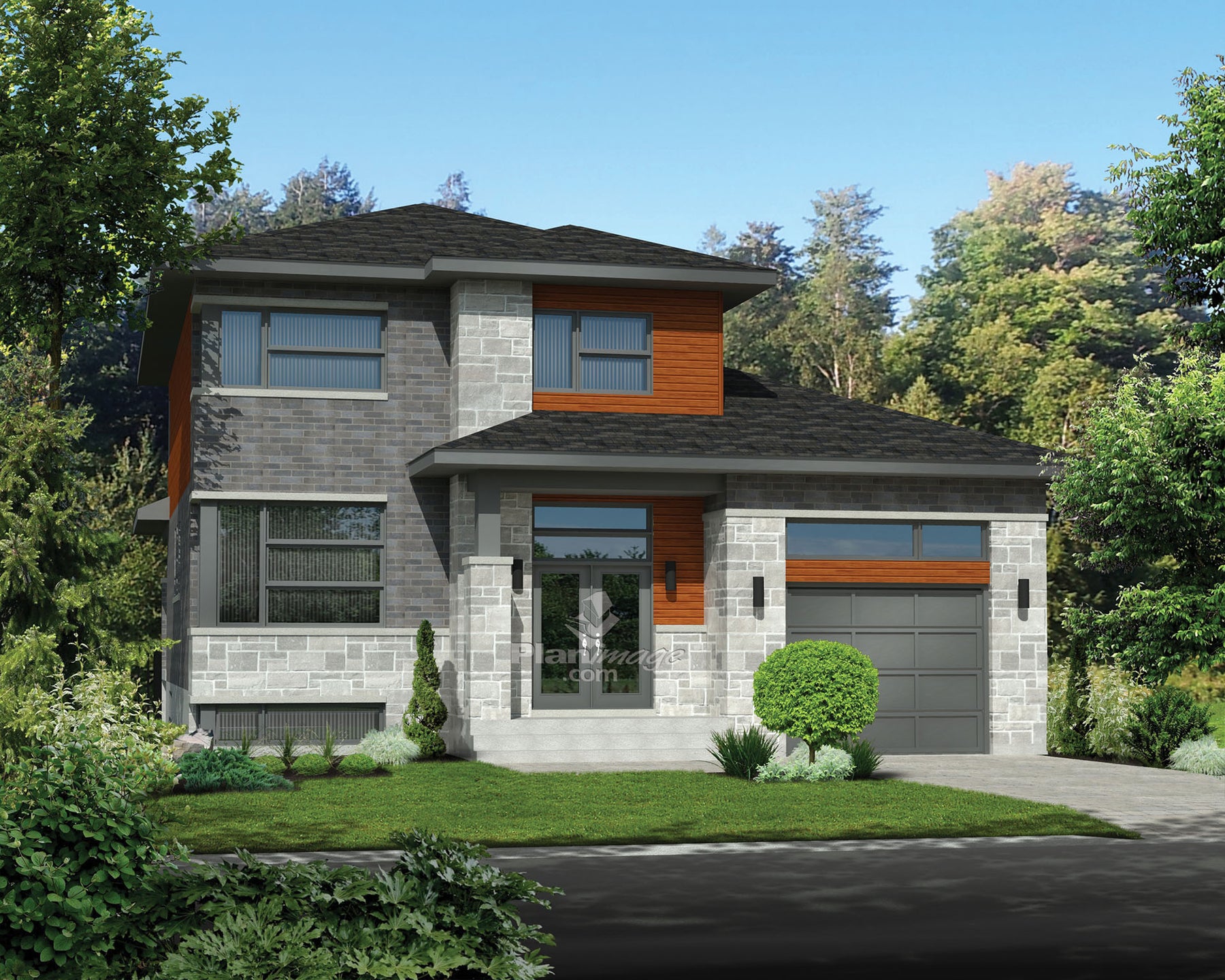 This magnificent two-storey house stands out with typically urban architectural details and materials. The home is 40 feet wide by 58 feet deep and provides a 2,609 square-foot living area. A 319 square-foot one-car garage with a side door is attached to the house.