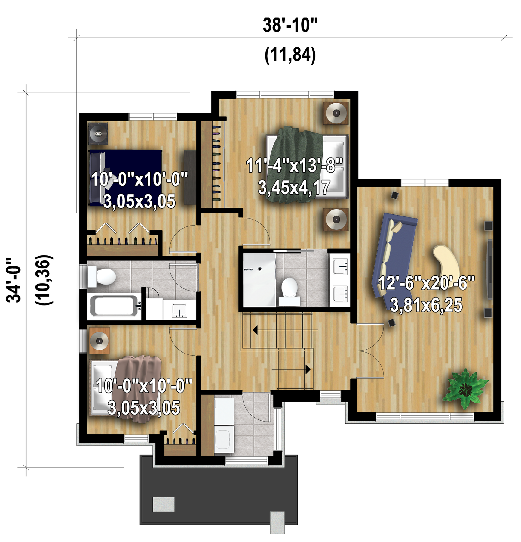 | Front | 38 ft 10 in | Total living surface | 1839 ft² |