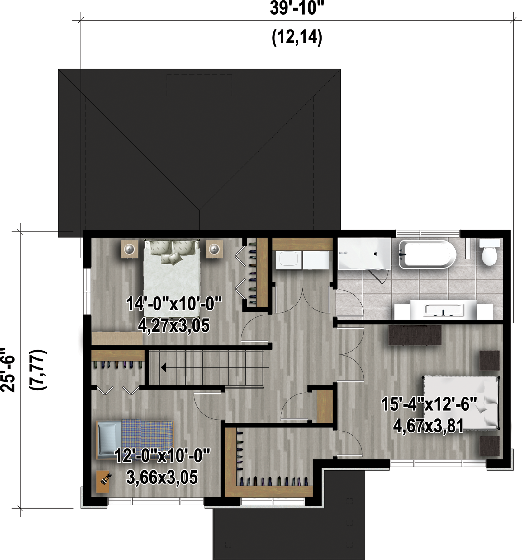 | Front | 39 ft 10 in | Total living surface | 1861 ft² |