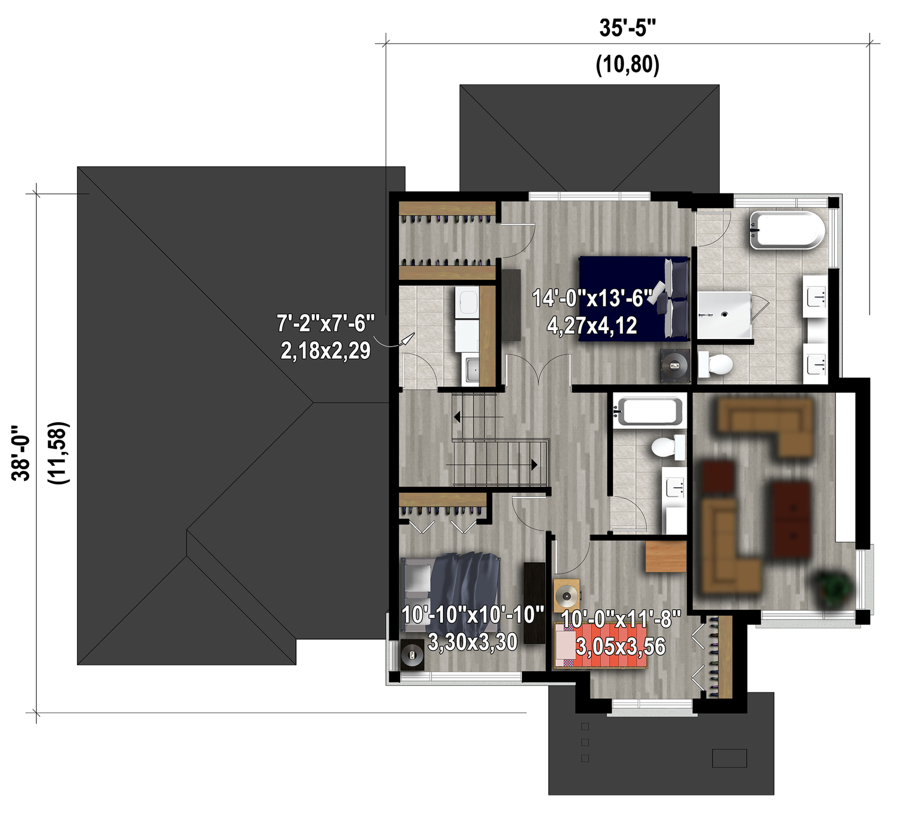 | Second floor area | 1218 ft² | Kitchen | L-shaped + Island |