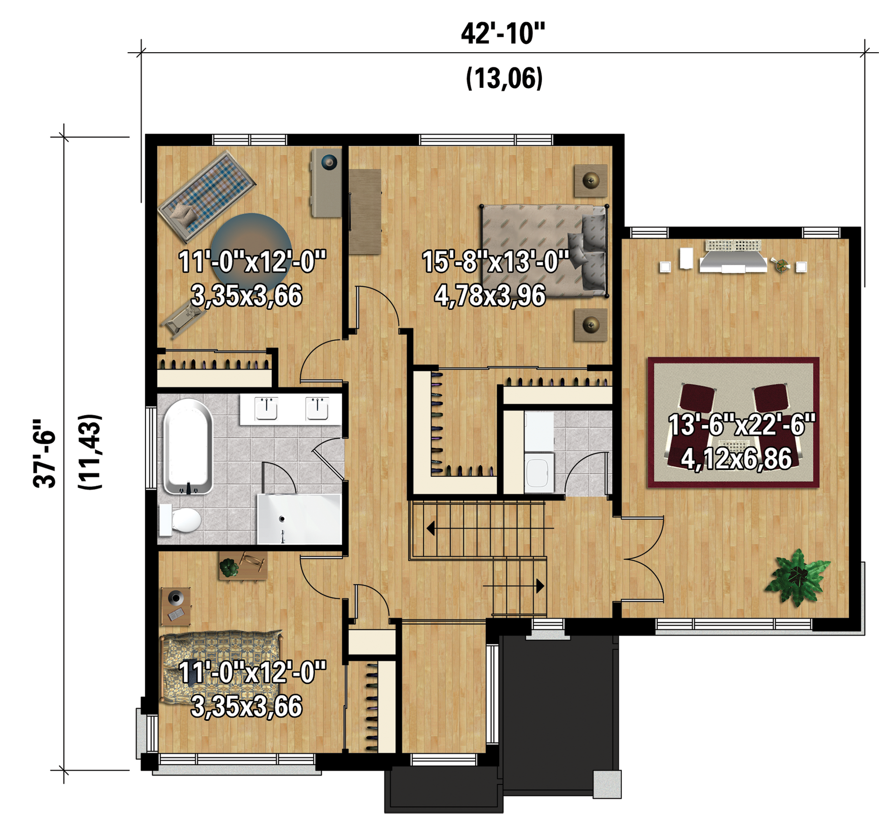 | Front | 42 ft 10 in |