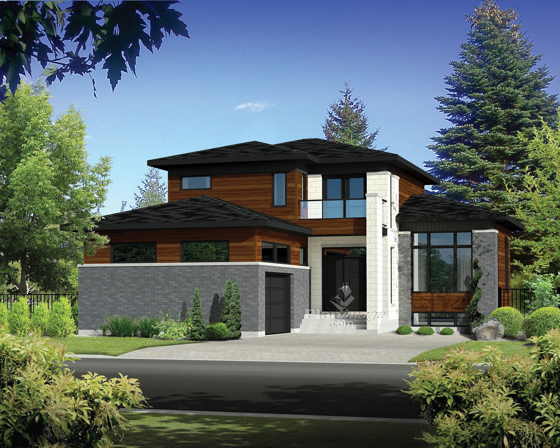 Everyone will notice this two-storey house. Its brick, wood and concrete siding blends perfectly with its resolutely modern architectural style. The balcony on the upper floor doubles as a porch above the entrance. The house is 44 feet 10 inches wide by 45 feet 6 inches deep and provides 1,848 square feet of living space. It also includes a 334 square foot one-car garage with a side entrance.