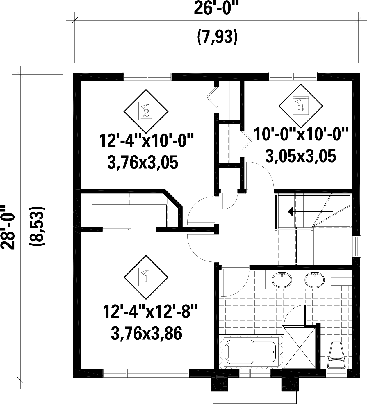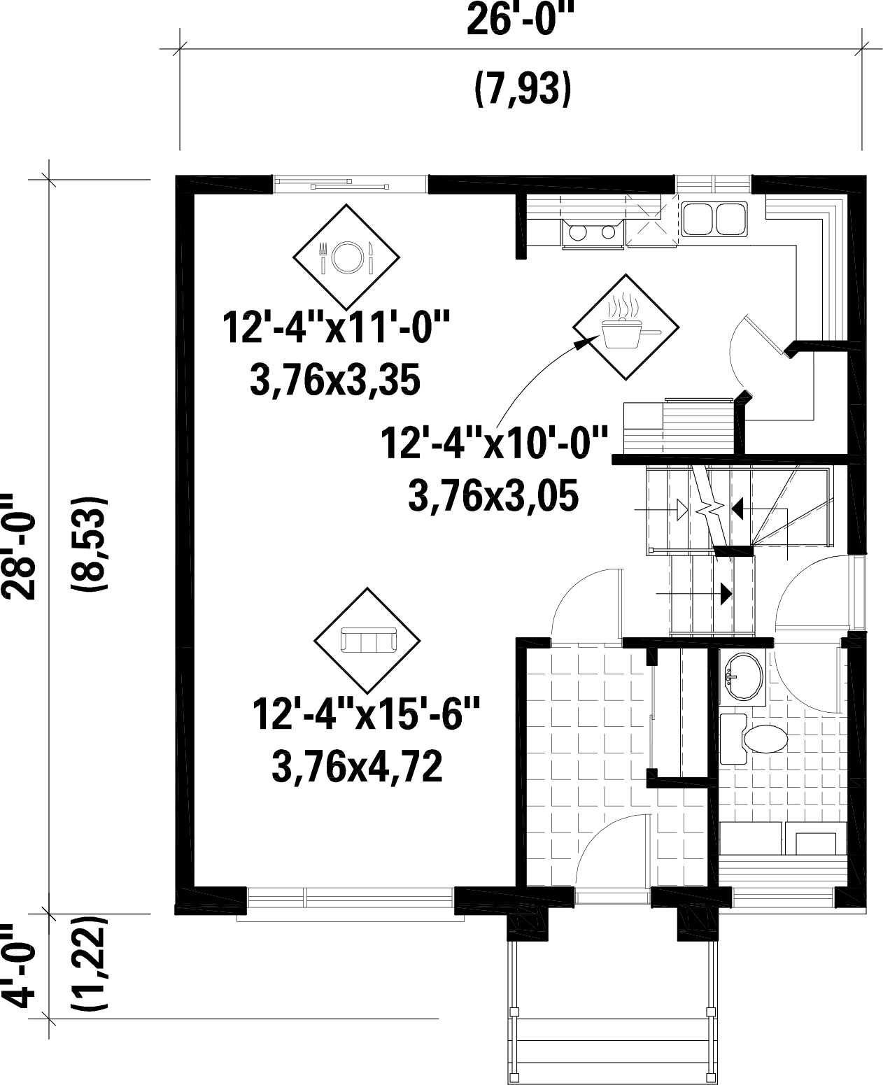 | Front | 26 ft | Total living surface | 1456 ft² |