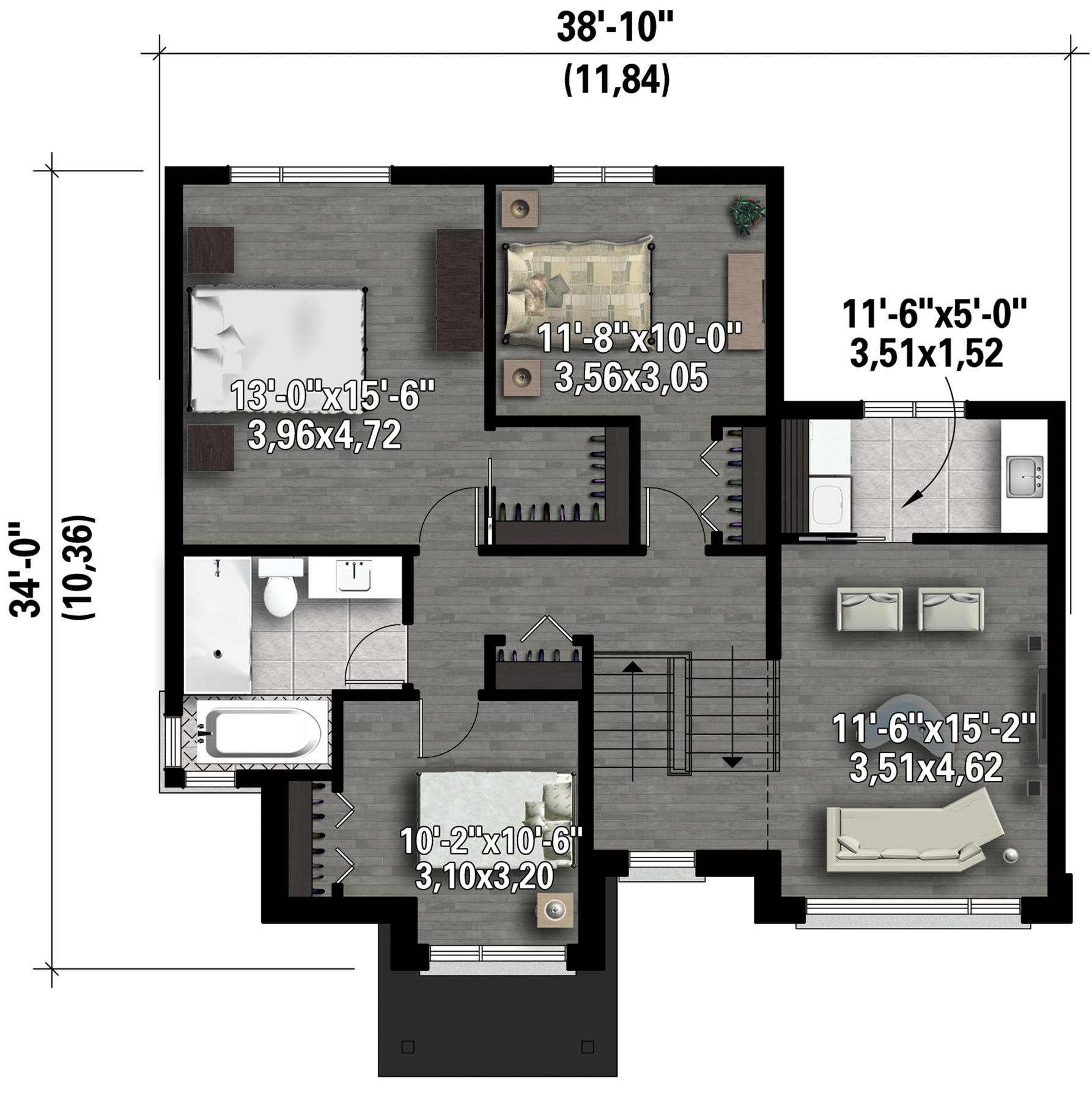 | Front | 38 ft 10 in |
