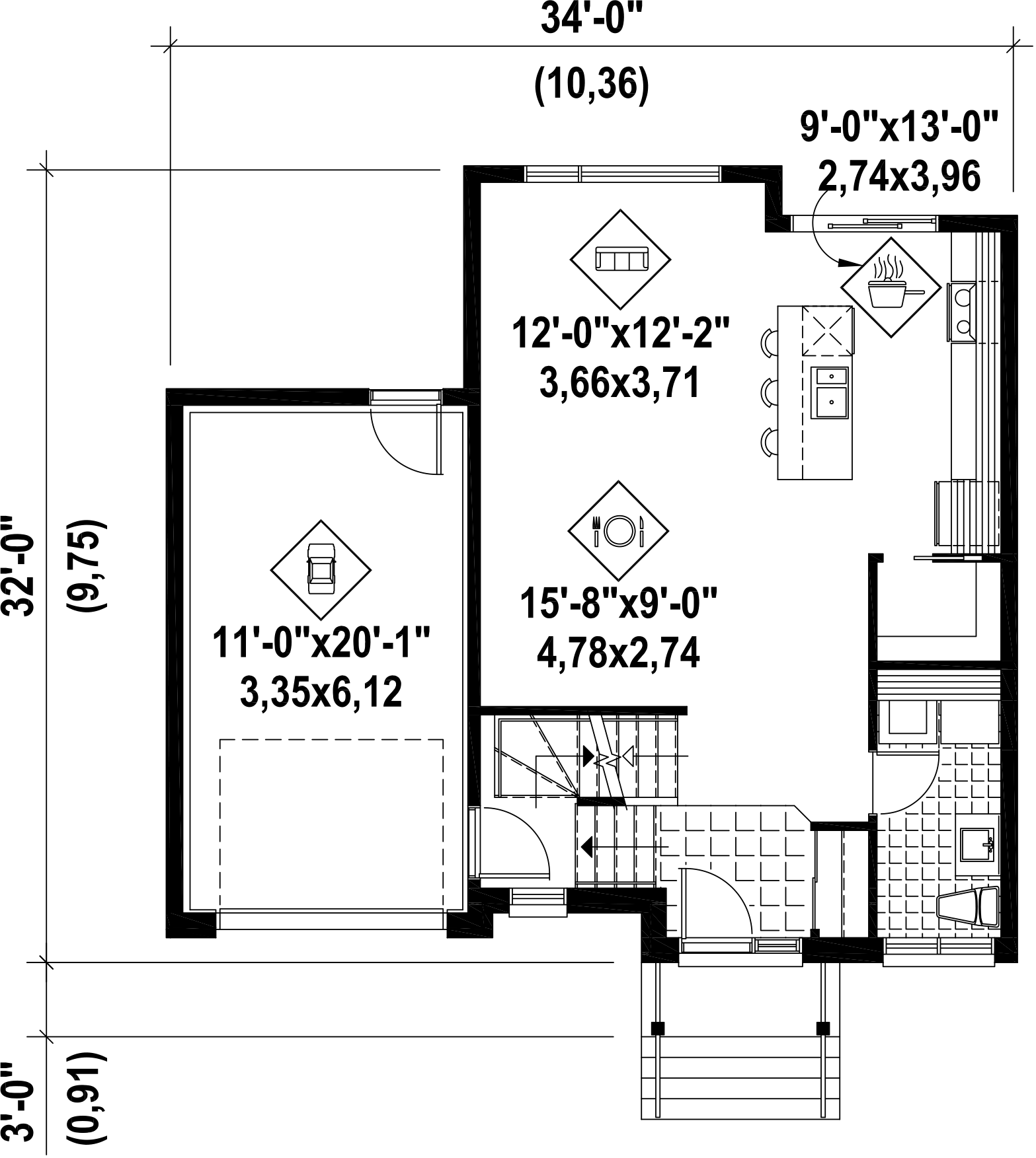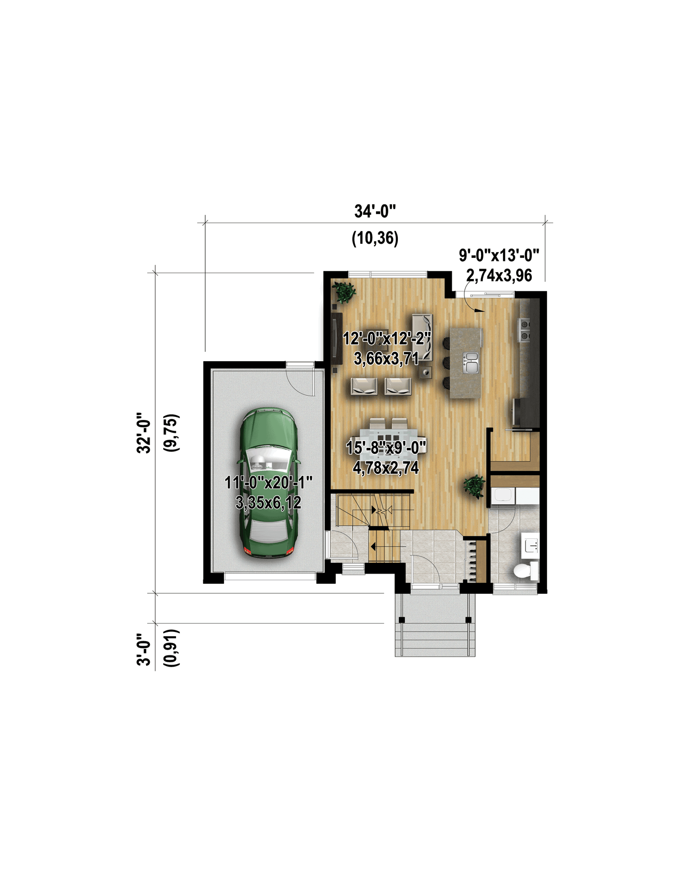 This superb urban two-storey house stands out with its panoramic windows, sleek lines and impeccable façade. The house is 34 feet wide by 32 feet deep and provides 1,608 square feet of living space, in addition to a 265 square-foot one-car garage.