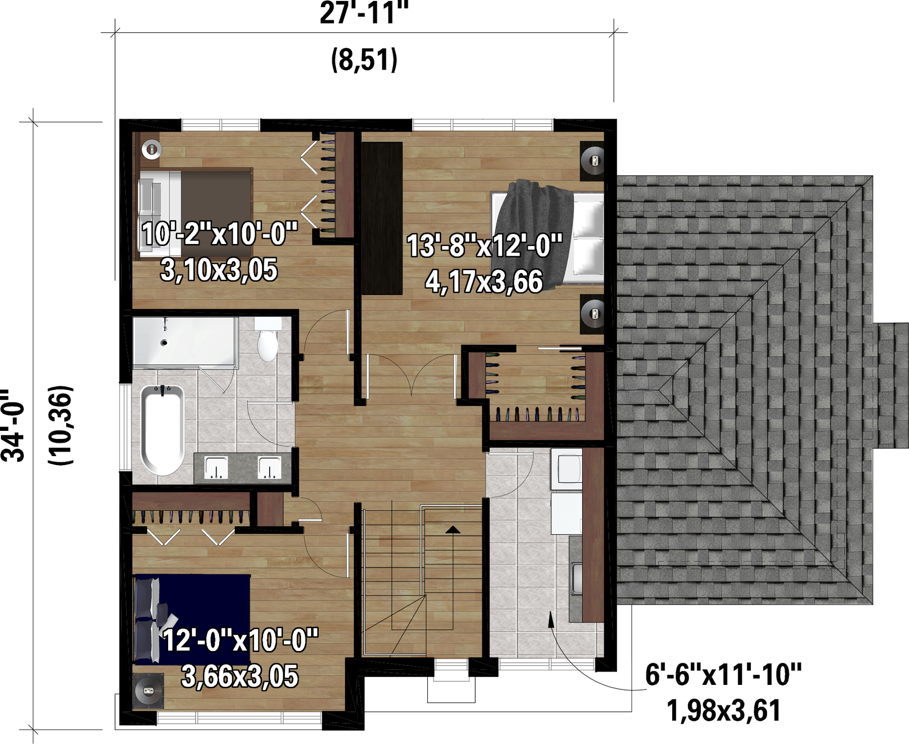 | Second floor wall | 8 ft | Front/back roof slope | 4/12 |
