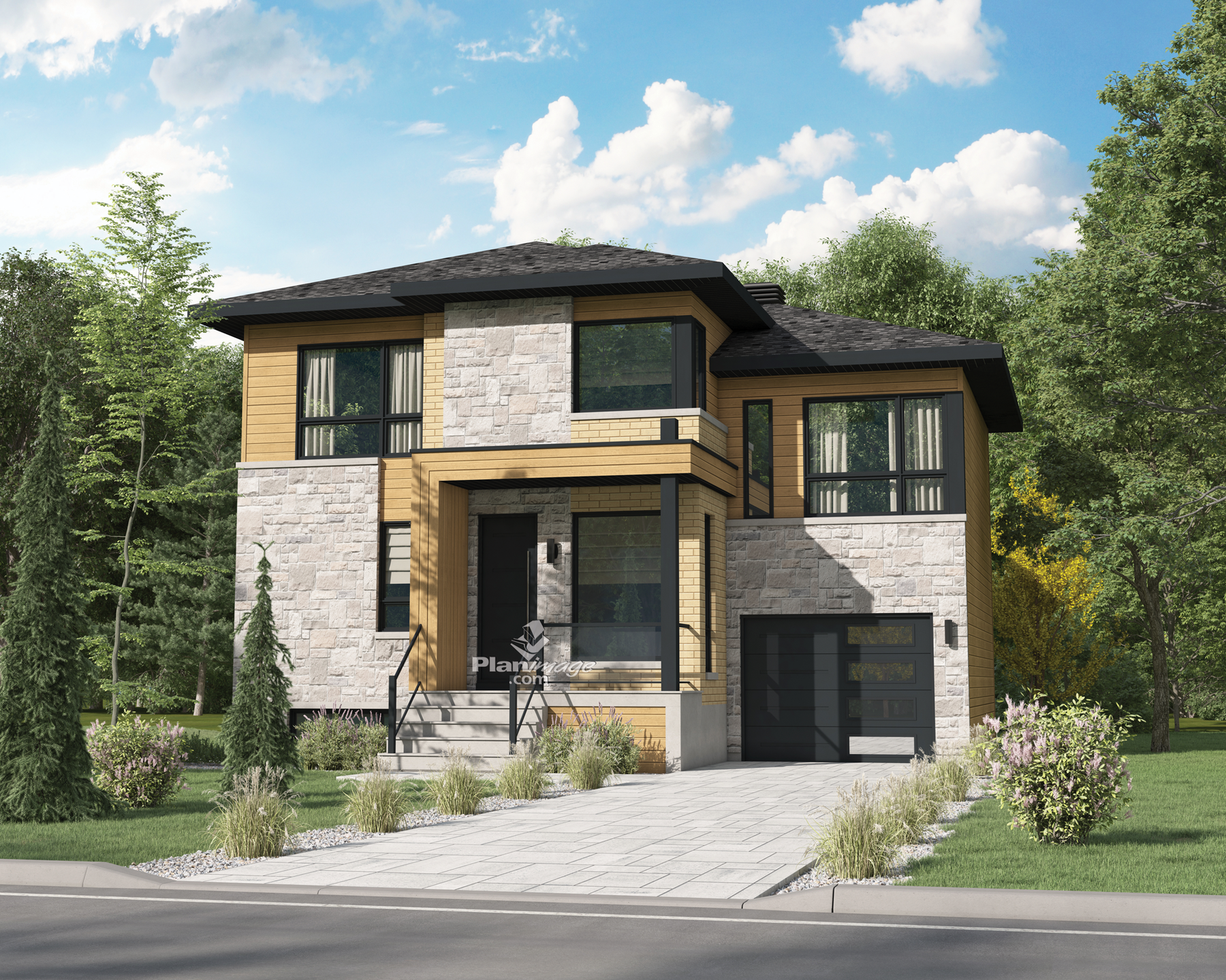 Bright yet imposing, this house has a large open area on the 796 sq. ft. ground floor which includes the living room and the dining room as well as a kitchen with a walk-in pantry. A small bathroom is also on this floor. The second floor is 1059 sq. ft. and has three bedrooms which includes the master bedroom with a walk-in closet, a full bathroom as well as a laundry corner. The room above the garage is both a family room and a storage area.