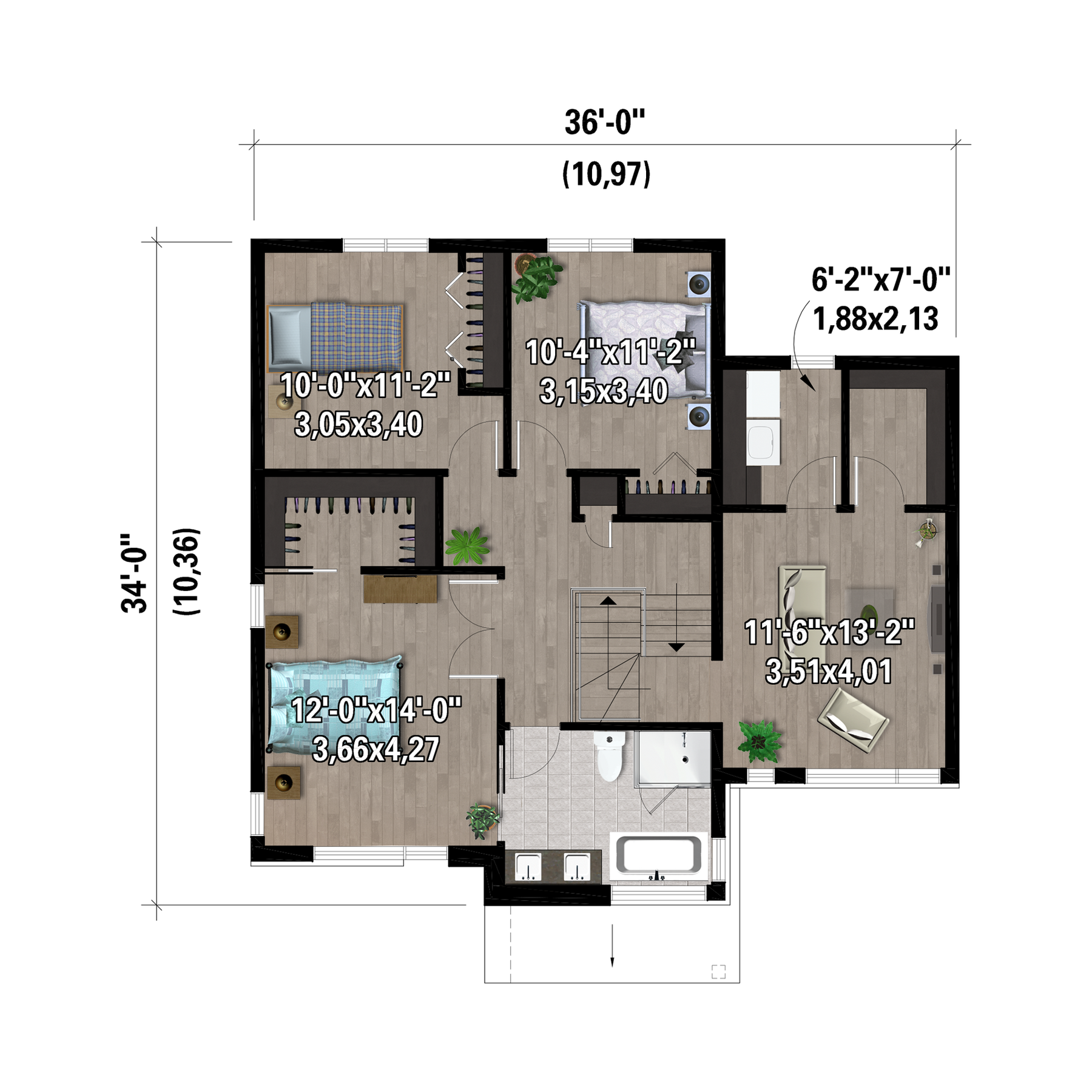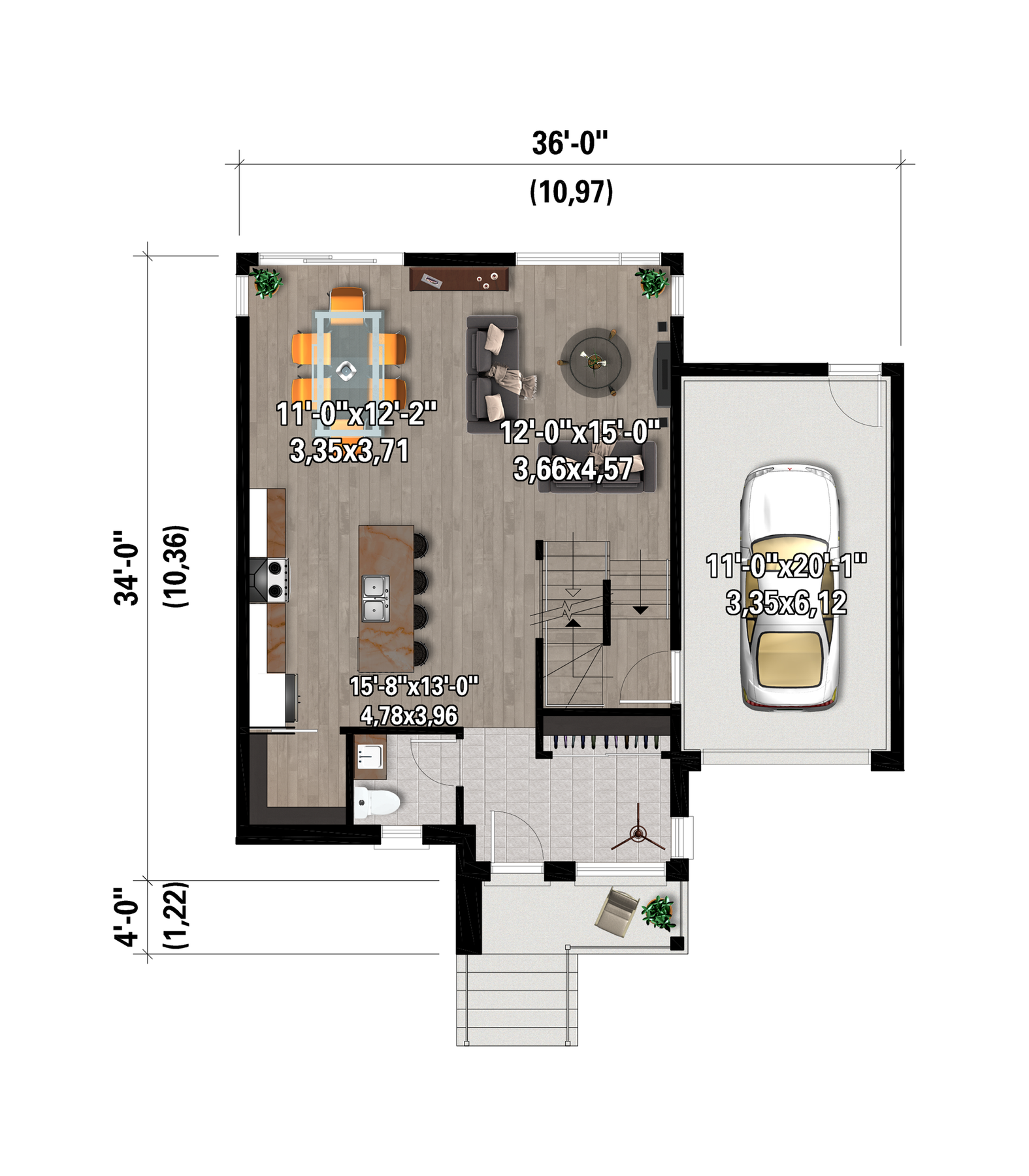 | Front | 36 ft | Total living surface | 1855 ft² |
