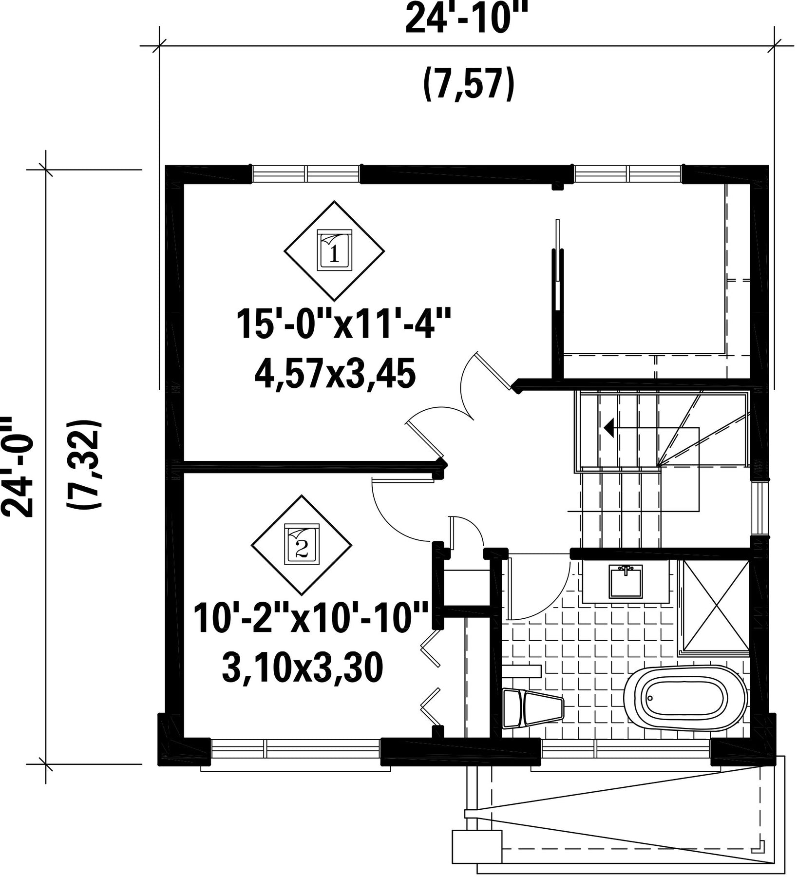 | Front | 24 ft 10 in | Total living surface | 1156 ft² |