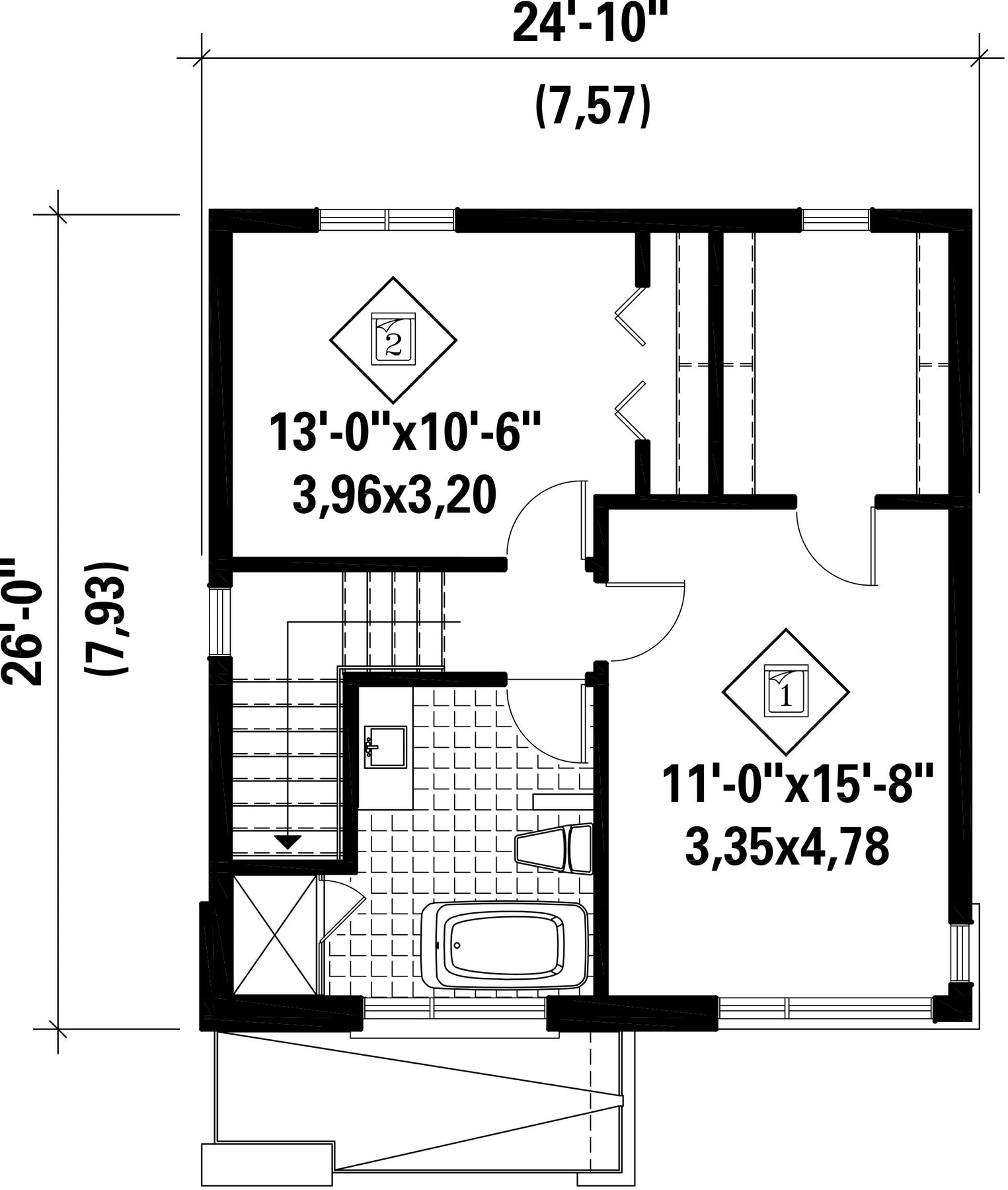 | Front | 24 ft 10 in | Total living surface | 1251 ft² |