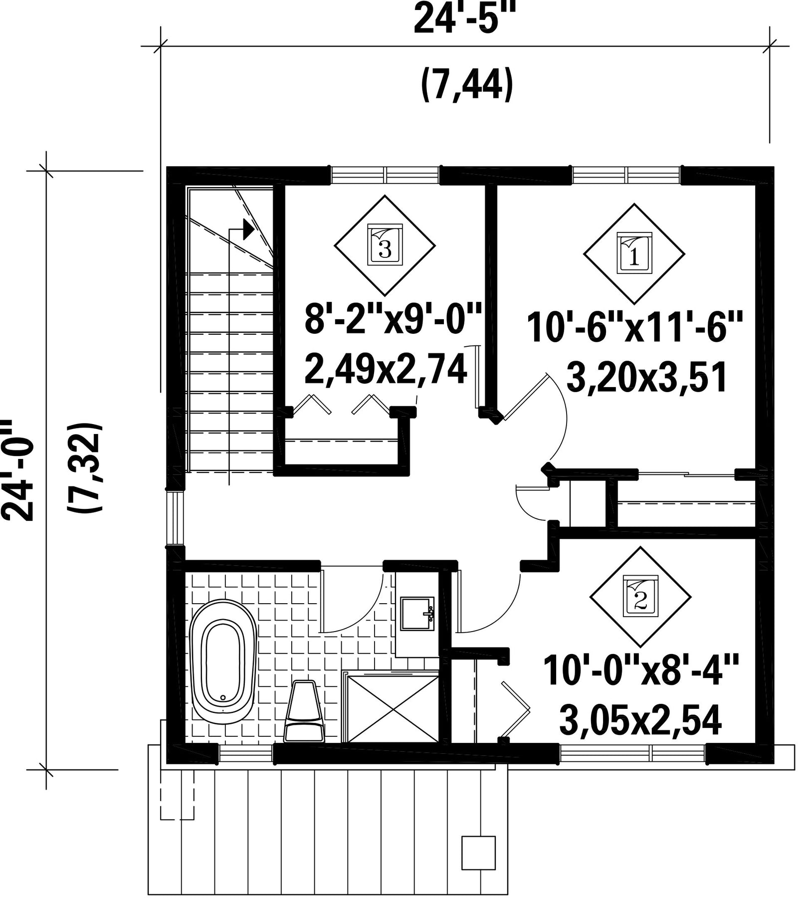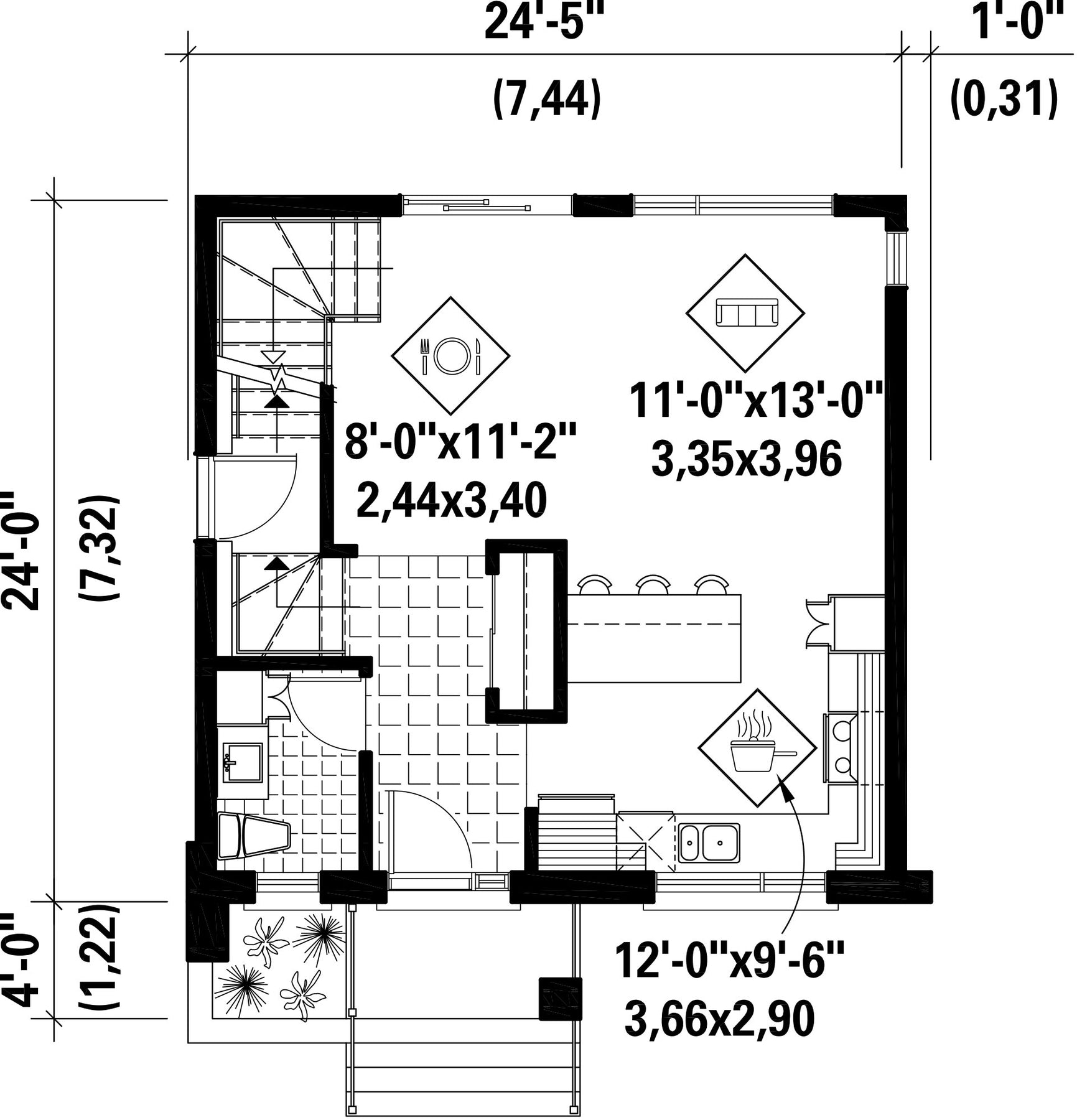 | Front | 24 ft 5 in | Total living surface | 1150 ft² |