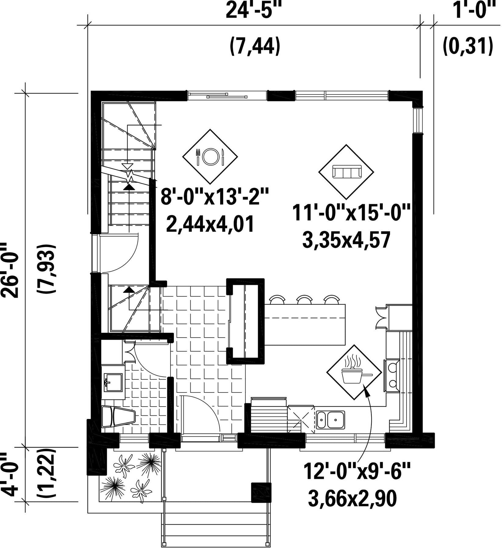 | Front | 24 ft 5 in |