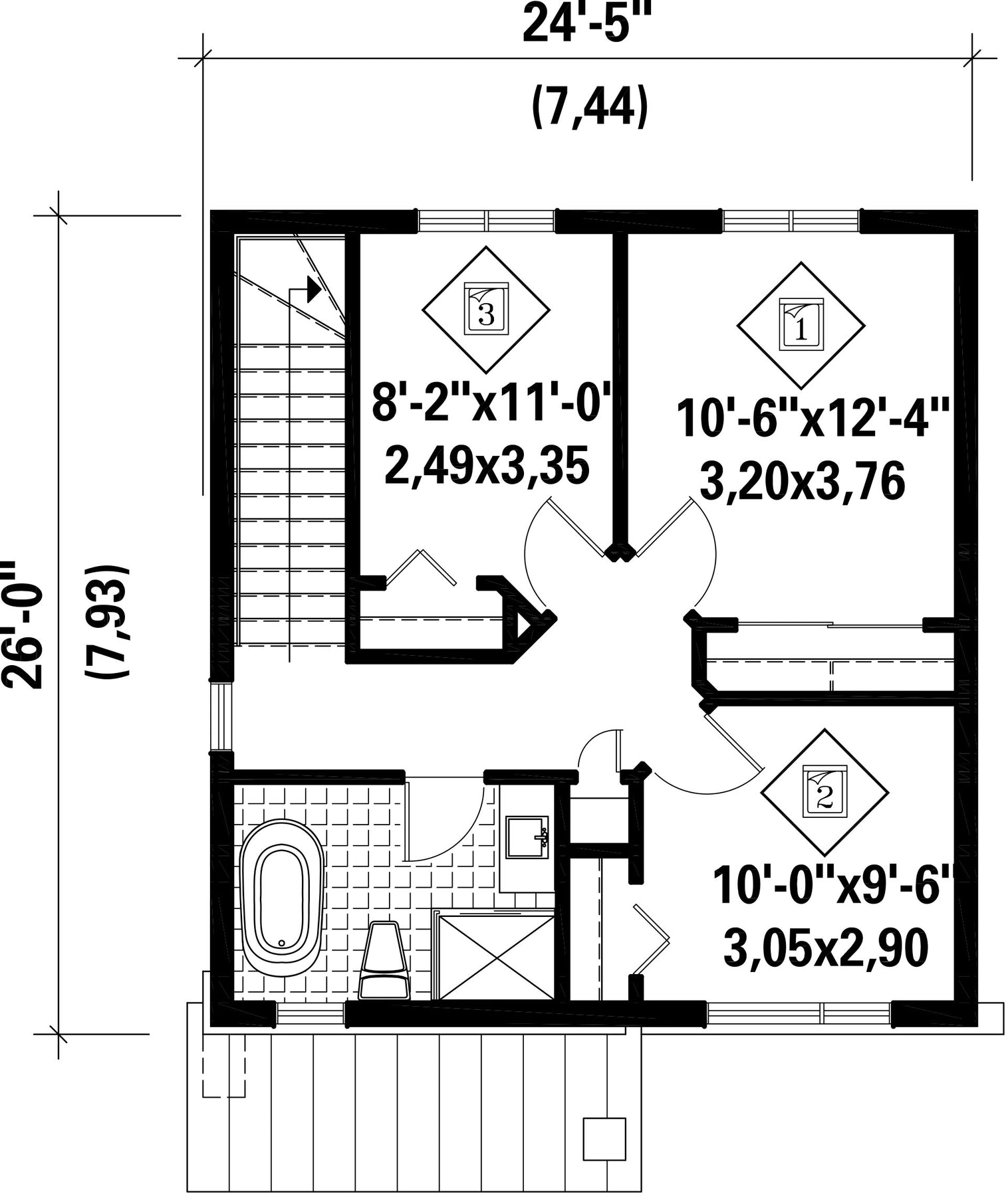 | Front | 24 ft 5 in | Total living surface | 1246 ft² |
