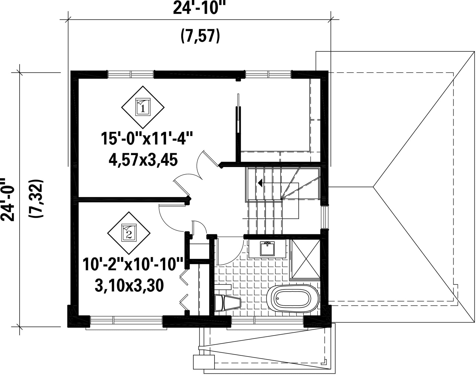 | Second floor wall | 8 ft | Front/back roof slope | 6/12 |