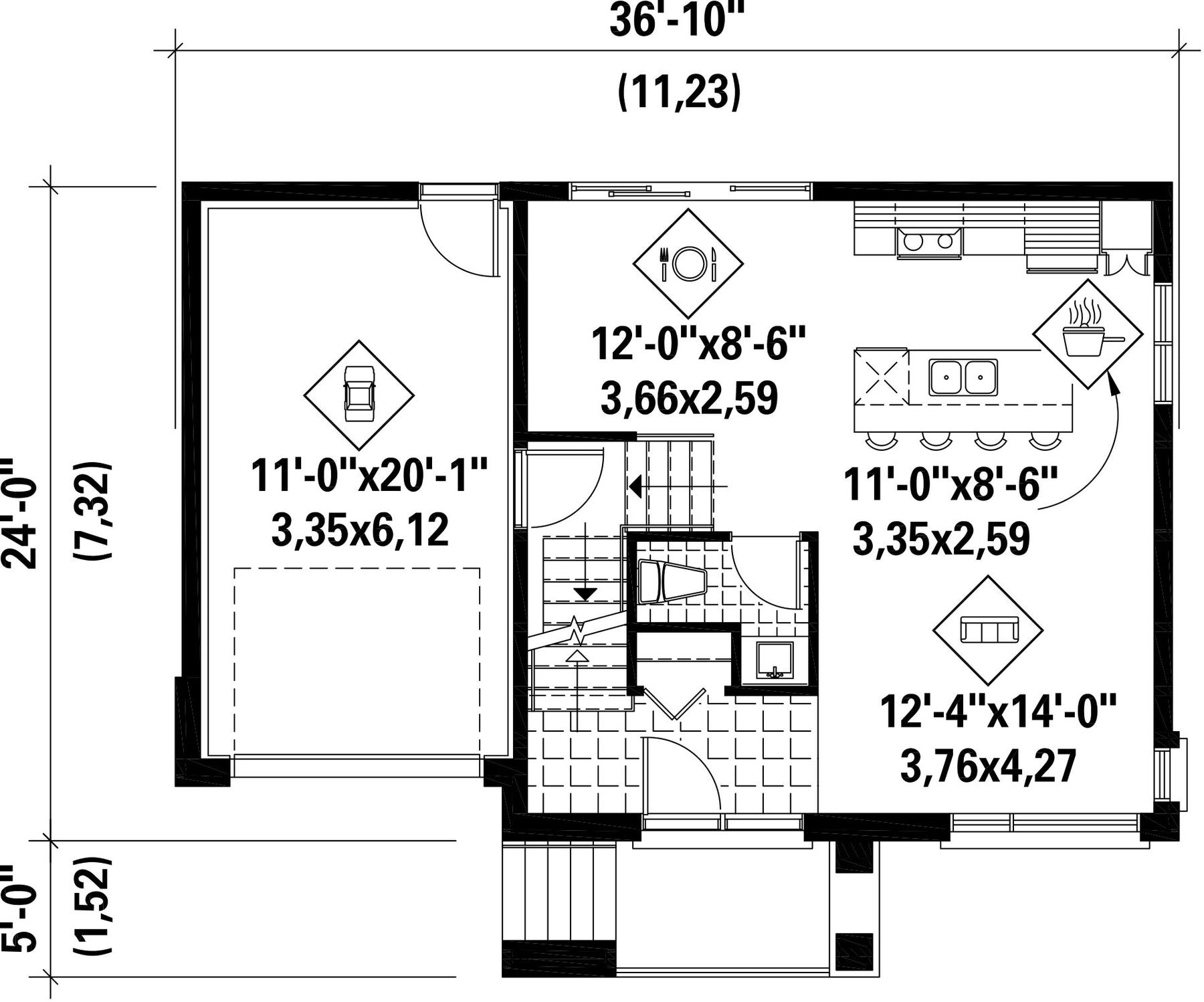 This plan is offered with multiple variants. You can consult the variants by choosing a plan number in the menu below. The technical plan in the images as well as the information and dimensions table will update automatically.