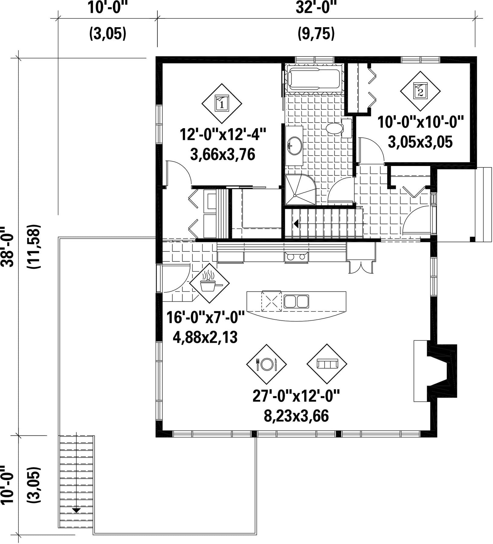 | Front | 32 ft | Total living surface | 1108 ft² |
