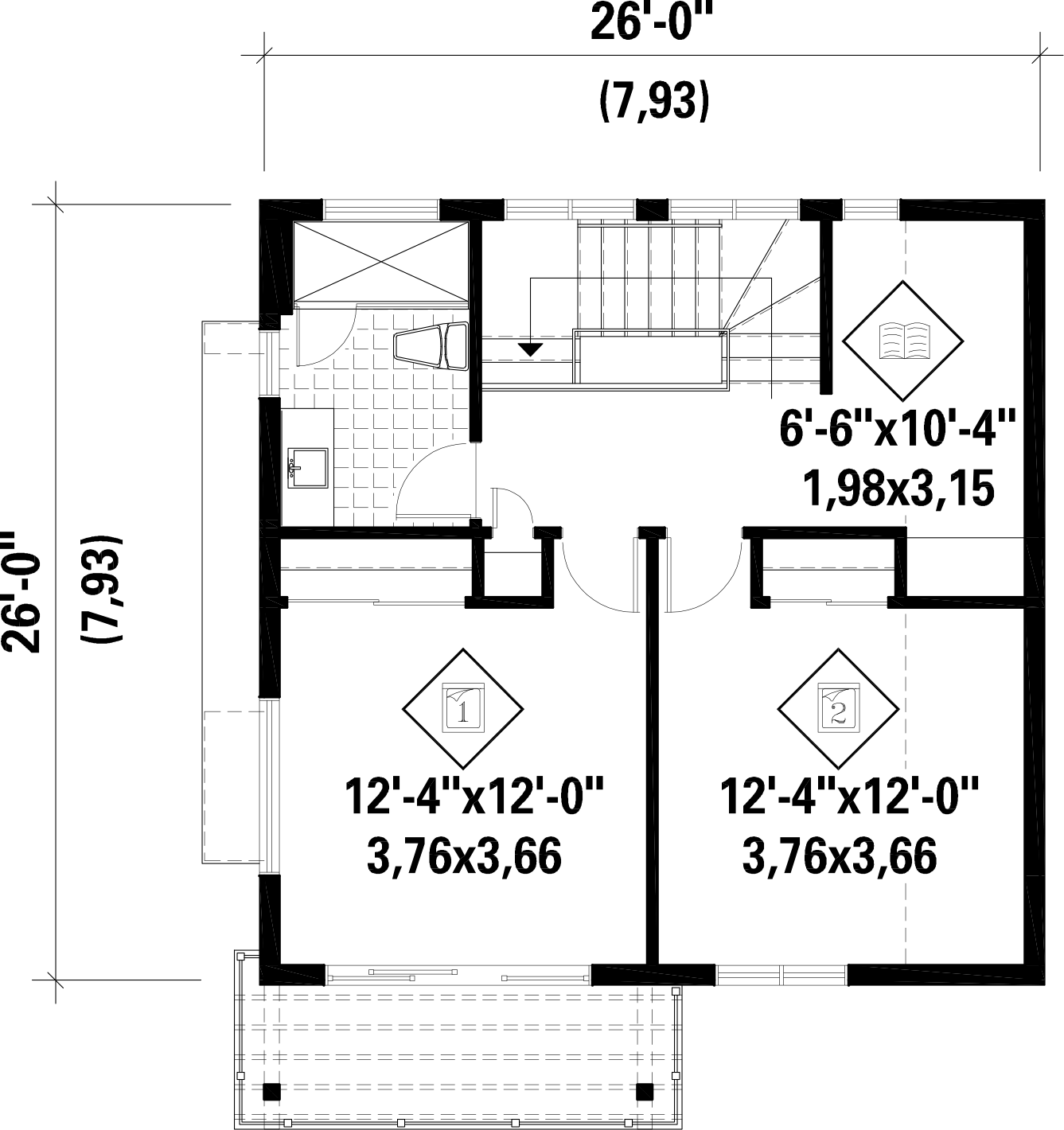 Front 26 ft Total living surface 1404 ft²