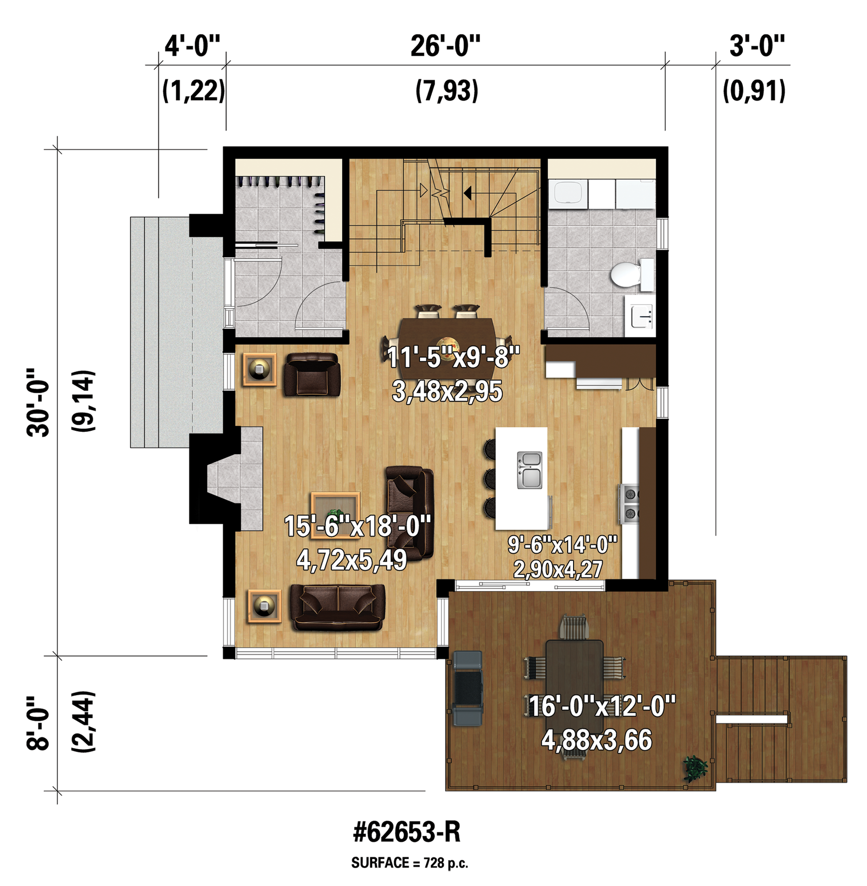 First floor area 728 ft²