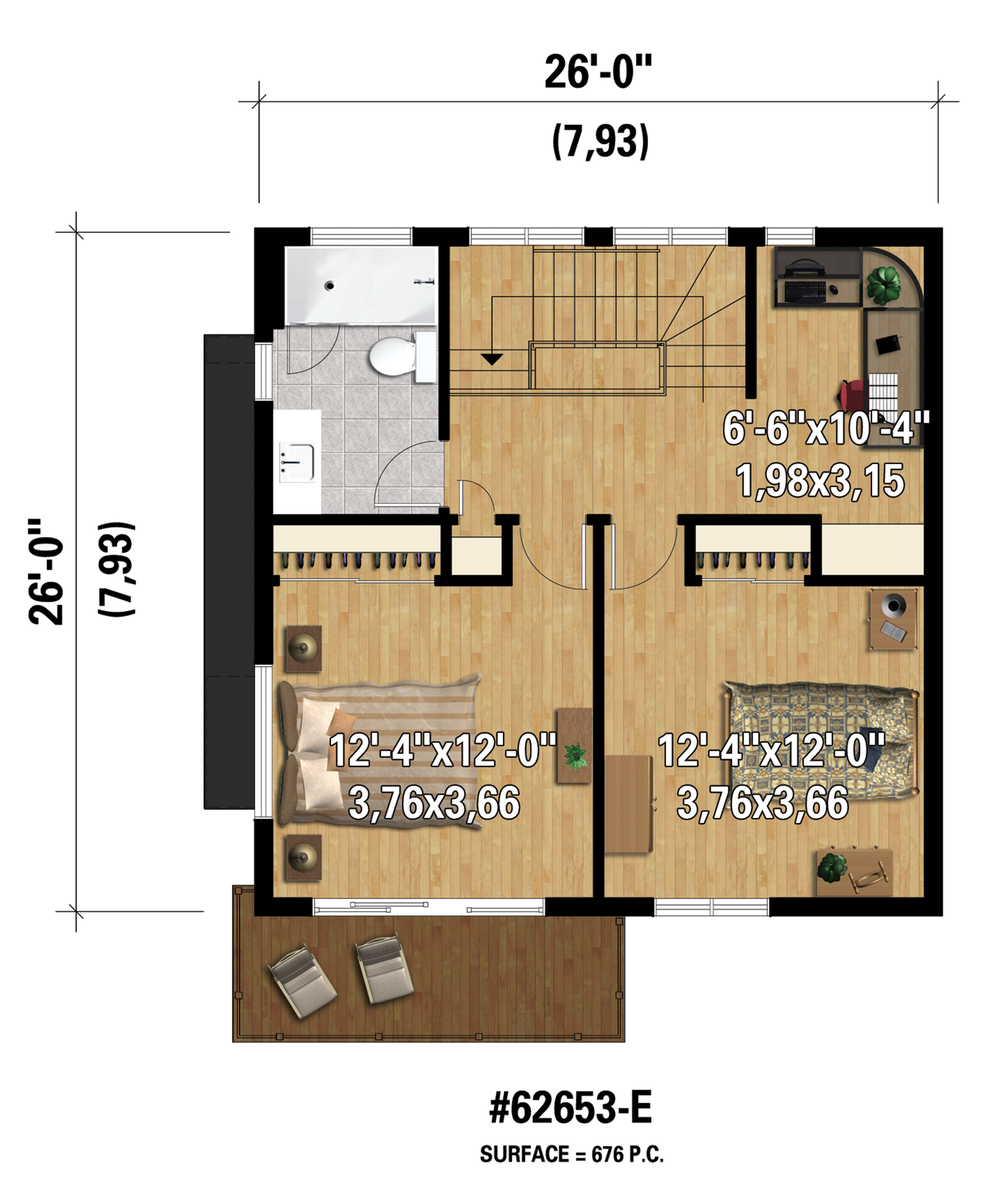 Second floor area 676 ft²