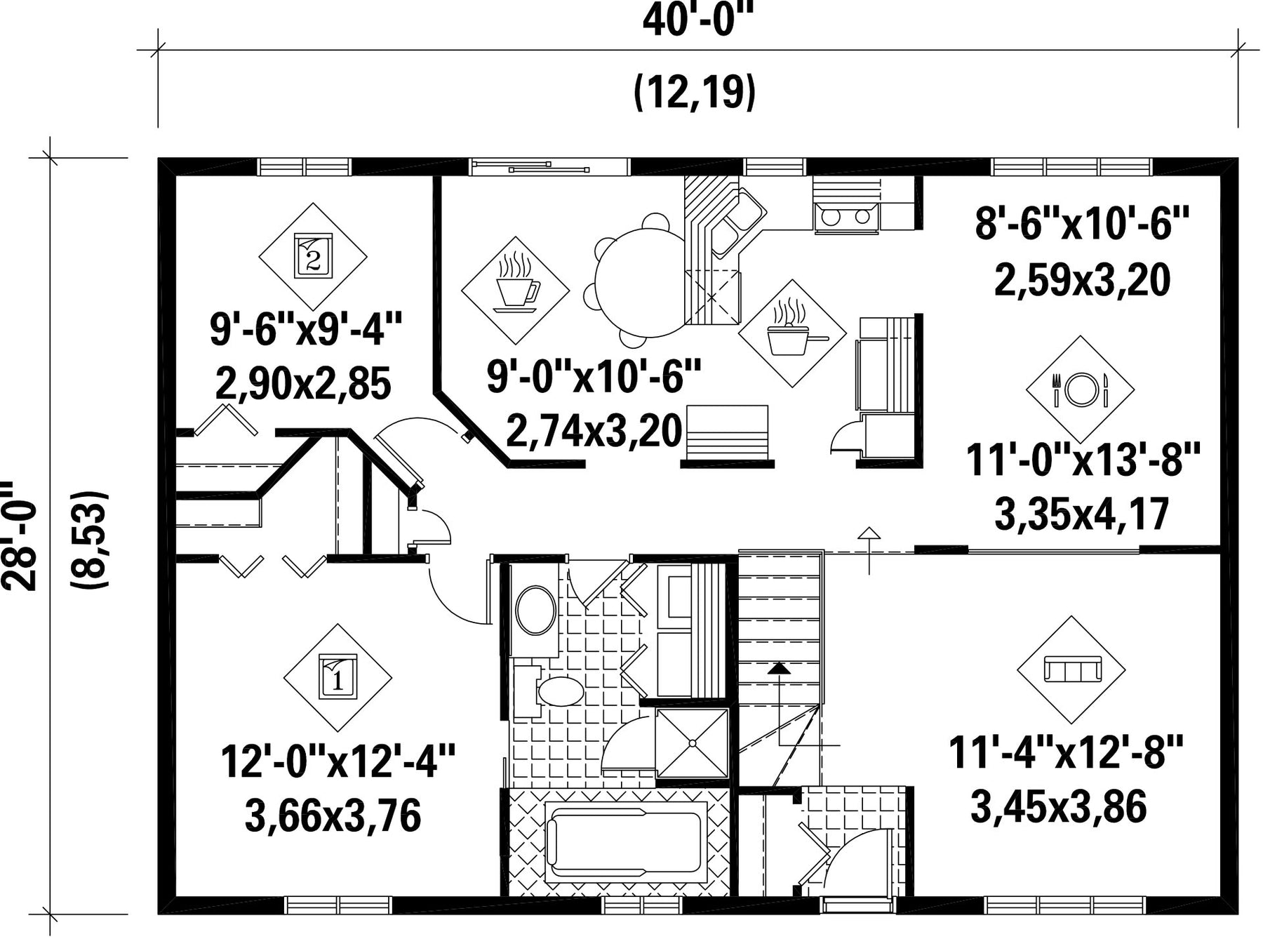 | Front | 40 ft | Total living surface | 1120 ft² |