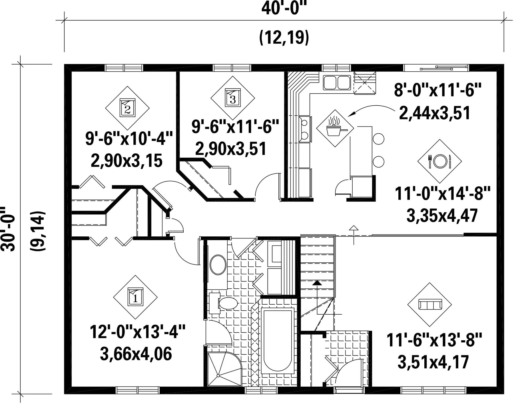 | Front | 40 ft | Total living surface | 1200 ft² |