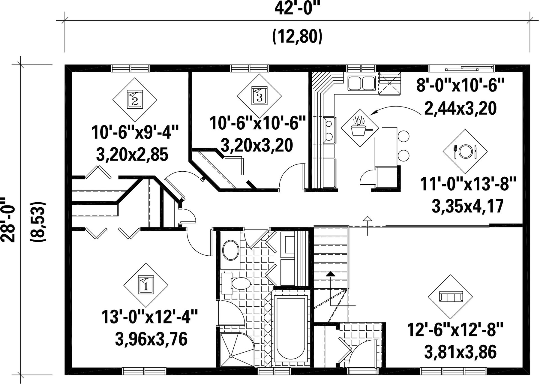 | Front | 42 ft | Total living surface | 1176 ft² |