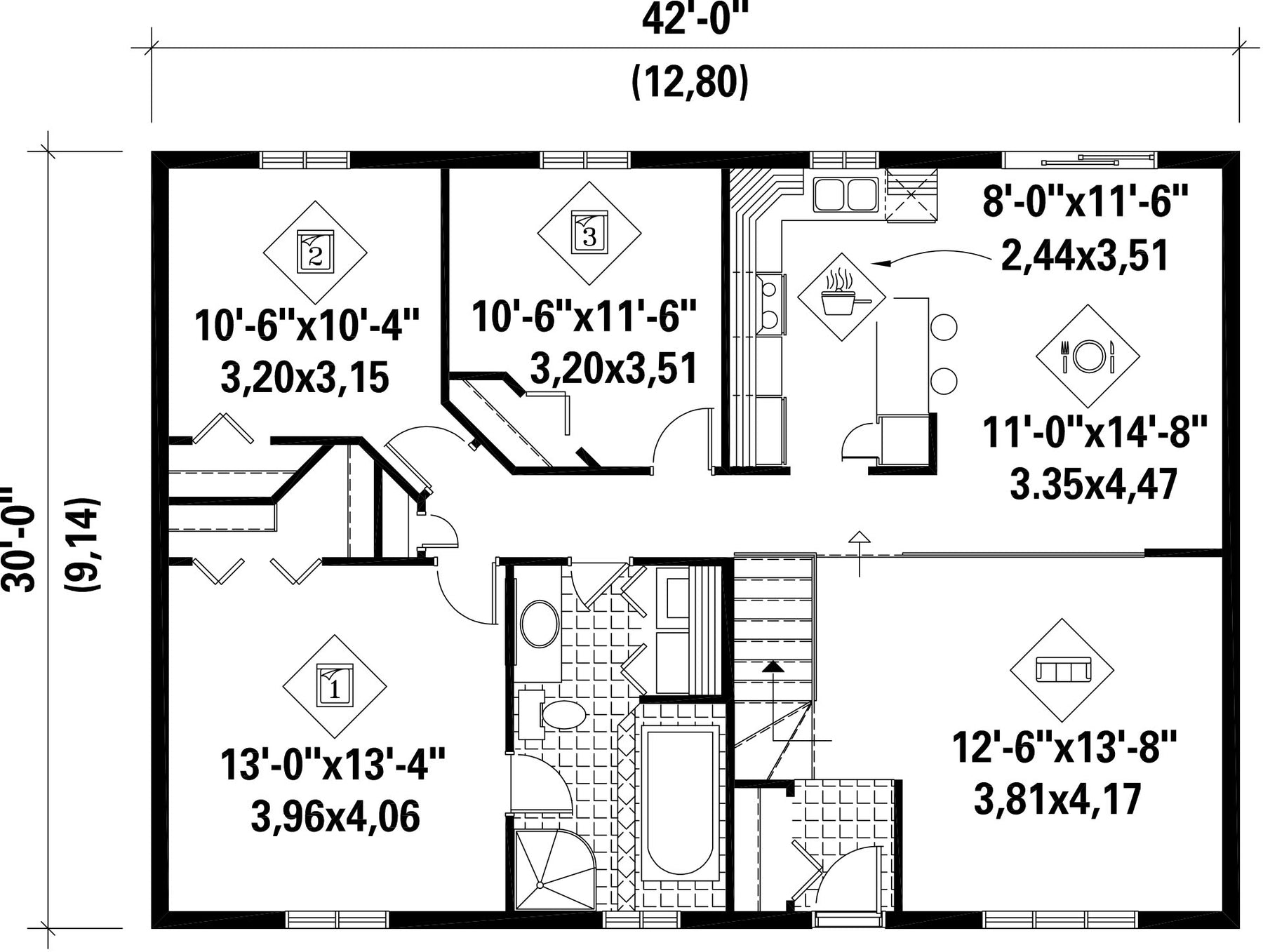 | Front | 42 ft | Total living surface | 1260 ft² |